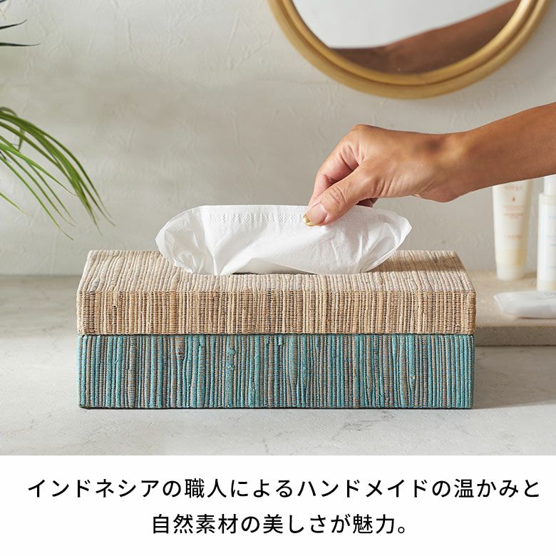 選べる天然素材と、豊富なサイズ展開であなたのお好みにぴったりフィットするティッシュケース新登場! フタとボディに段差がないフラットデザイン【FLATTY FITシリーズ】ウォーターヒヤシンスのアジアンティッシュケース レギュラーサイズ[14191]