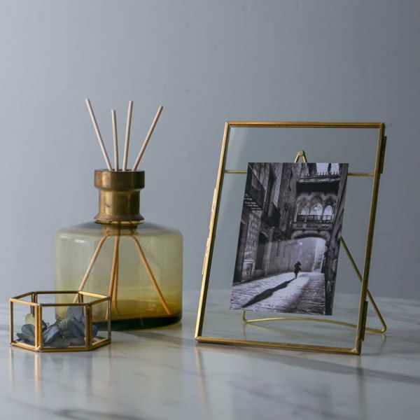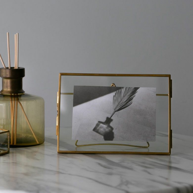 写真フレーム 横置き 横 クリア 透明 ゴールド プレゼント フォトフレーム 横置き ガラスと真鍮 ガラスケース ハガキサイズ [67052]【 写真たて 写真入れ フォトスタンド フォトディスプレイ 写真 メニュー スタンド ヴィンテージ 風 ビンテージ 風 アンティーク 風 おしゃれ 韓国 韓国インテリア アジアン 雑貨 】