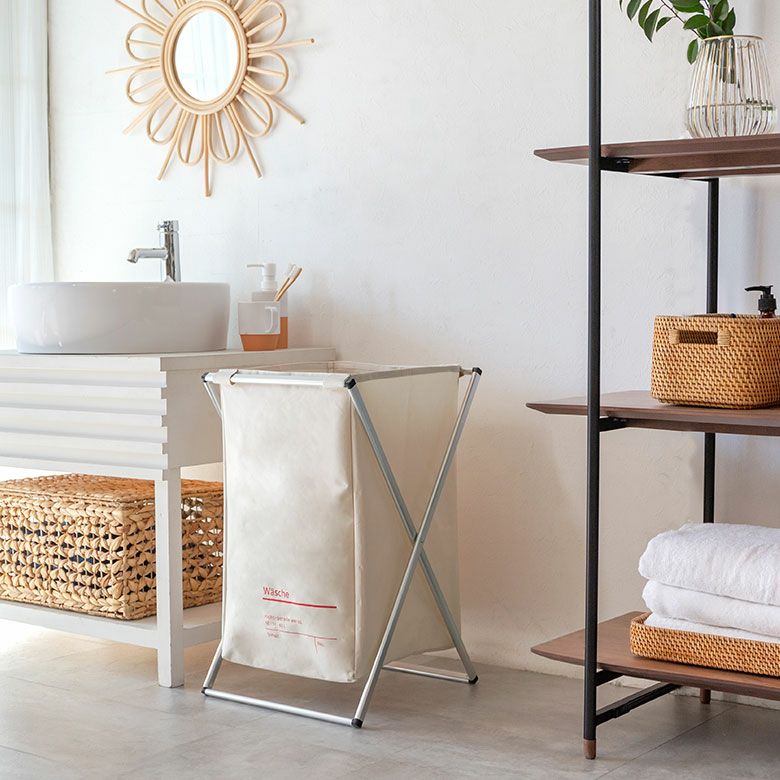 ランドリーバスケット 折り畳み 洗濯かご 大容量 収納かご ランドリーバスケット 折りたたみ 洗濯かご 大容量 約50L [E] スクエア 持ち手付き 60100-b【 ランドリーボックス 折り畳み スタンド付き ランドリーバッグ おしゃれ かご 収納 収納かご 便利 洗濯物入れ 脱衣かご アジアン 雑貨 インテリア】