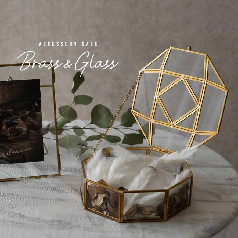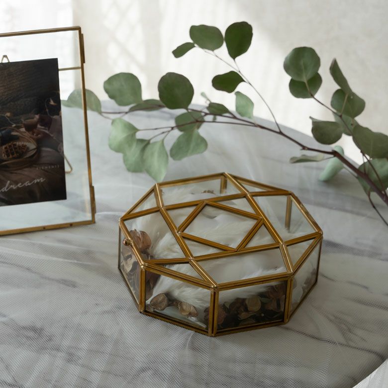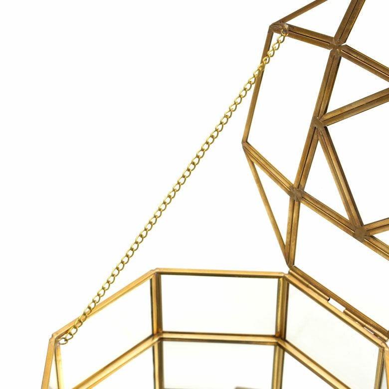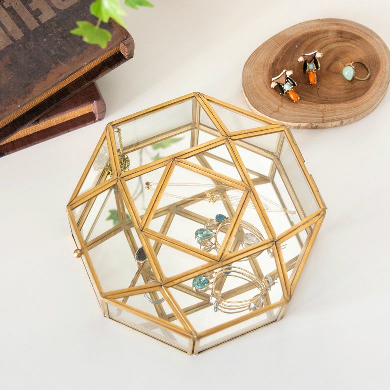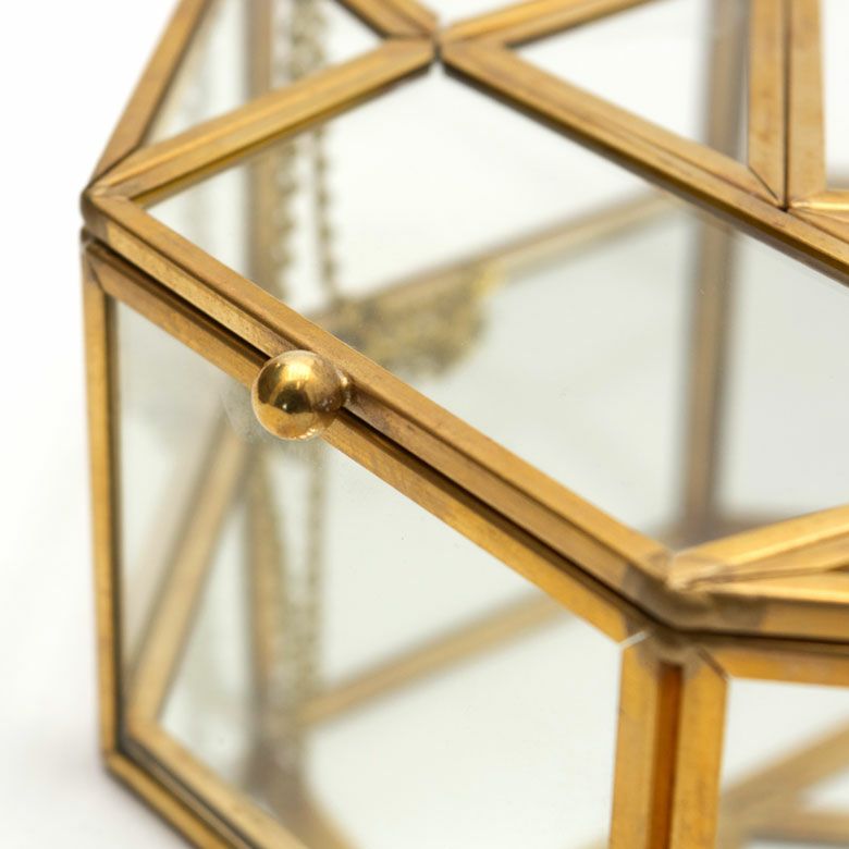 ディスプレイケース ダイヤ型 ダイヤモンド型 ガラスボックス ガラスと真鍮でできた 収納ケース 鏡付き 八角 [66712]【 ディスプレイケース 小物入れ ガラスボックス おしゃれ 可愛い 透明 ガラスケース アクセサリーケース ジュエリーボックス アクセサリー入れ コレクション ゴールド アジアン雑貨 アジアン 雑貨 】