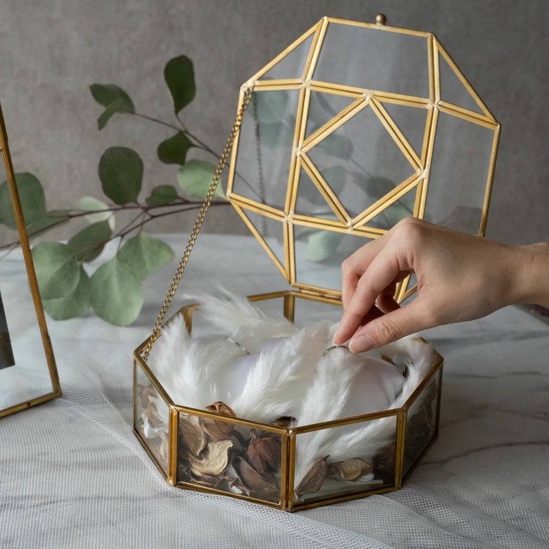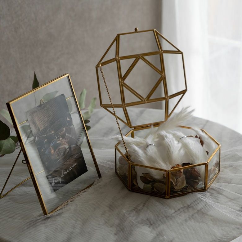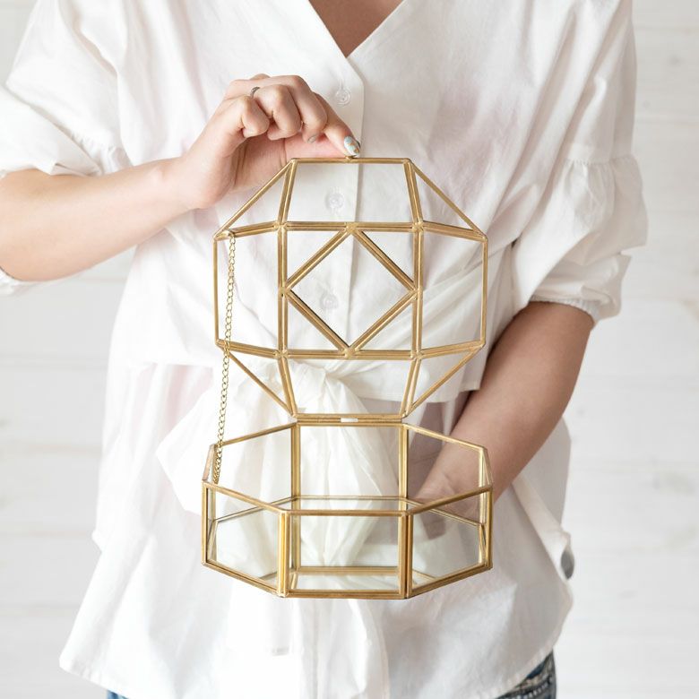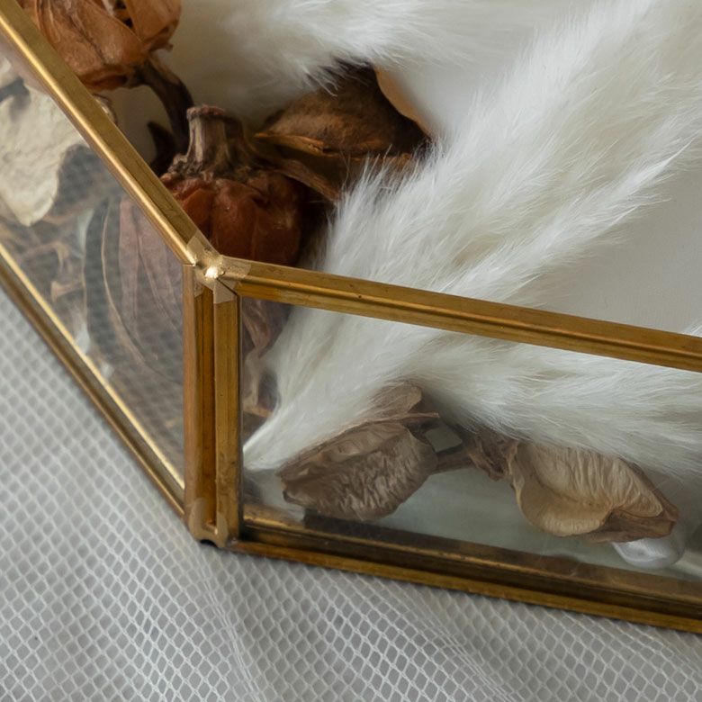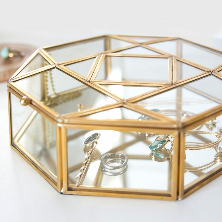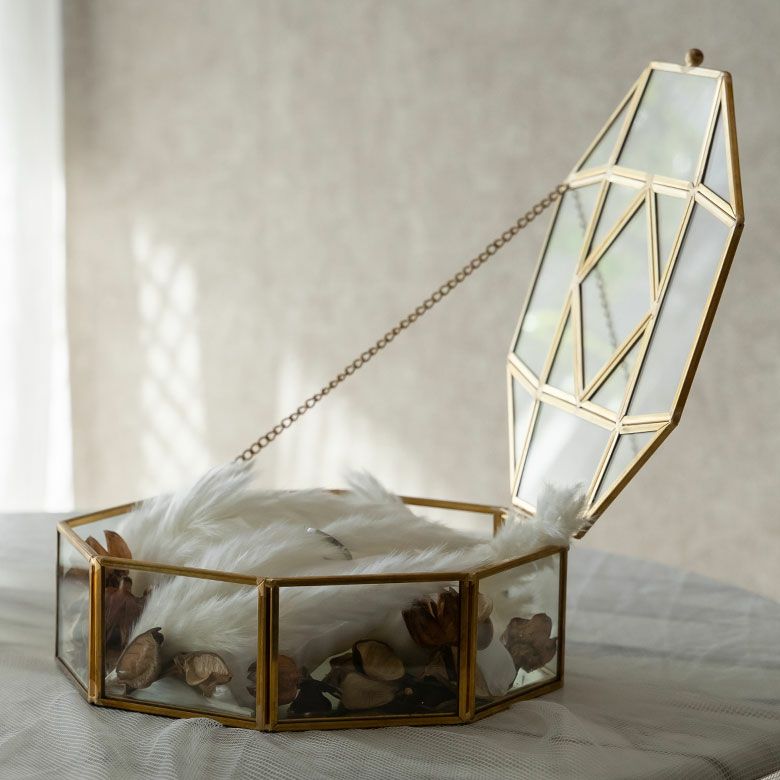 ディスプレイケース ダイヤ型 ダイヤモンド型 ガラスボックス ガラスと真鍮でできた 収納ケース 鏡付き 八角 [66712]【 ディスプレイケース 小物入れ ガラスボックス おしゃれ 可愛い 透明 ガラスケース アクセサリーケース ジュエリーボックス アクセサリー入れ コレクション ゴールド アジアン雑貨 アジアン 雑貨 】