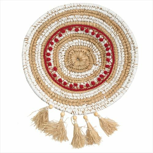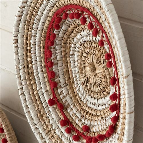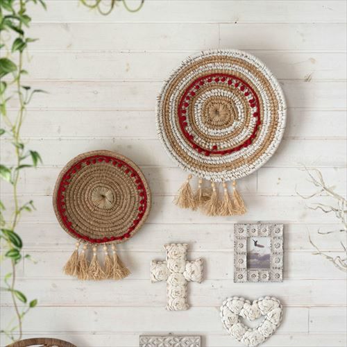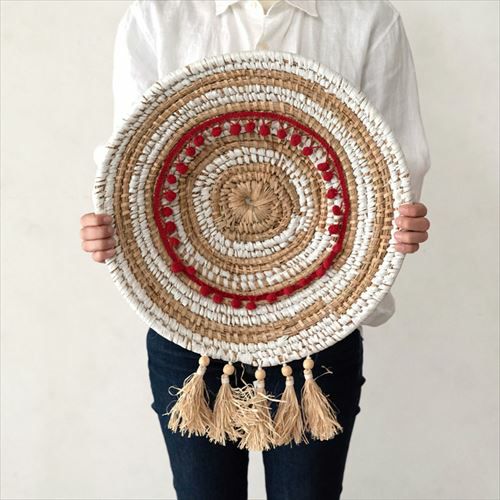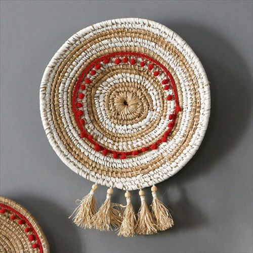 ウォールディスプレイ リビング ボヘミアン BOHO ボーホー 壁掛け ウォールデコレーション ラタン シーグラス製 円型 編み込みデザイン フリンジ付き 径約40cm [13717]【 壁飾り ウォールレリーフ ラウンドレリーフ ウォールインテリア ウォールデコ おしゃれ リビング アジアン雑貨 アジアン 雑貨 バリ島 】