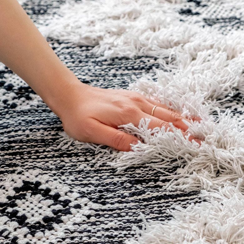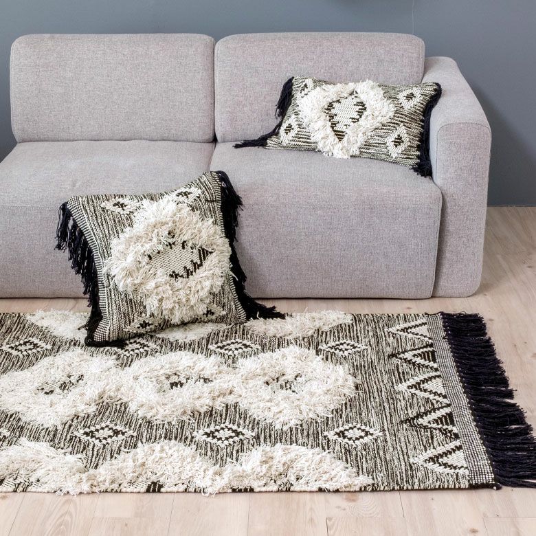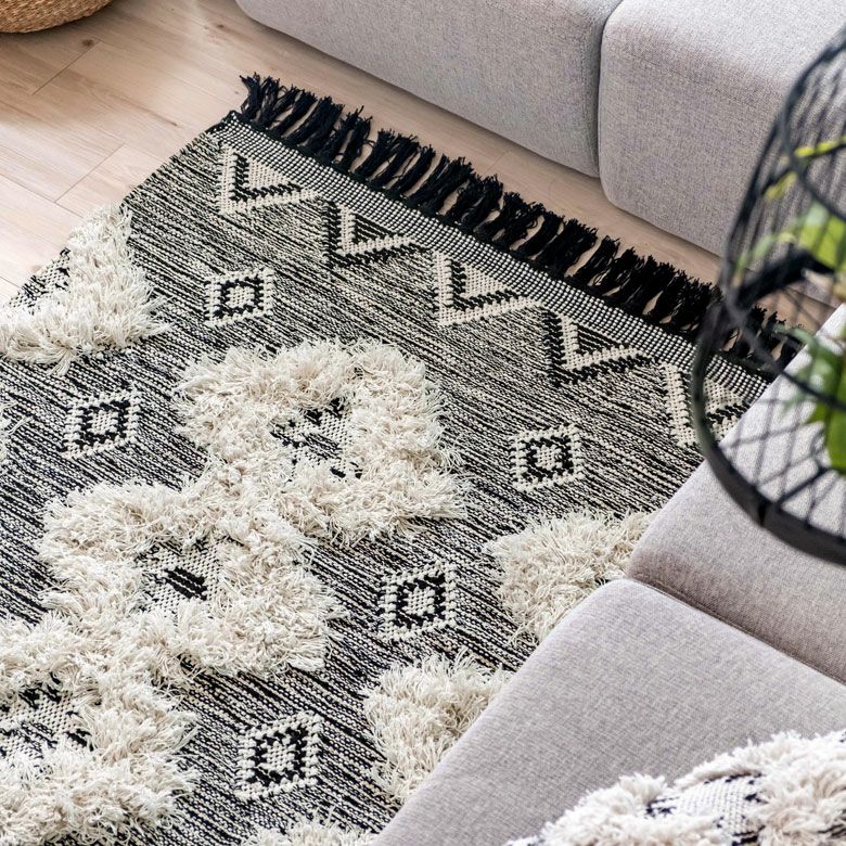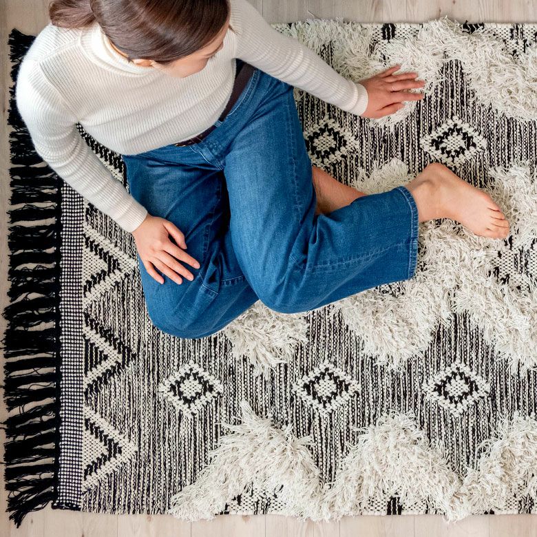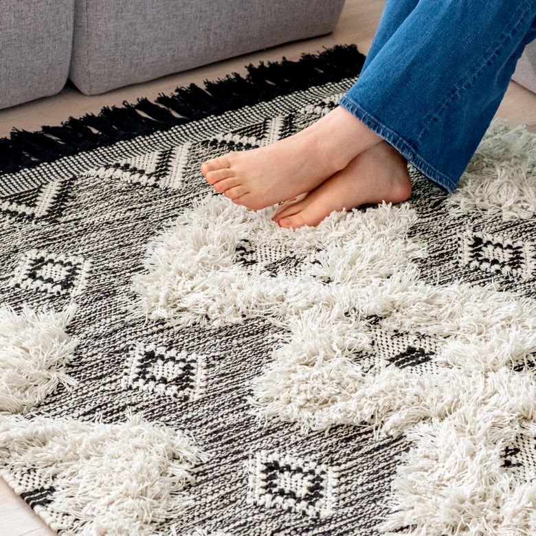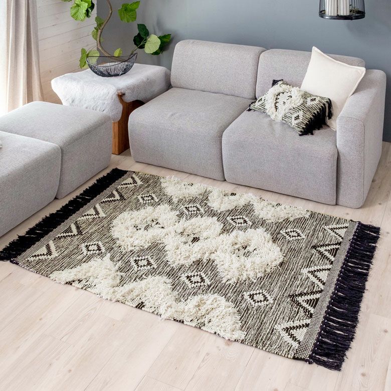 キリムラグ 民族柄 民族調 サーフィン コットン 綿 100×140 ラグ ラグマット オルテガ柄 エスニック フリンジ デザイン 100×140cm 白黒 BOHO [34419]【 カーペット 絨毯 じゅうたん おしゃれ お洒落 エスニック ボーホー モノトーン 長方形 オールシーズン 春 夏 秋 冬 厚手 敷物 マット アジアン アジアン雑貨 】