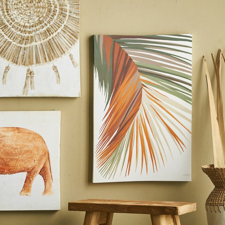 植物絵 玄関 寝室 葉 グリーン ボタニカルアート アートパネル トロピカル リーフ アースカラー 約 W 40cm D 60cm H 2.7cm キャンバスアート アートポスター 壁飾り 壁掛け 絵画 ウォールデコレーション ヤシの木 パームリーフ おしゃれ モダン 北欧 韓国 リゾート アジアン 雑貨 アジアン雑貨 [67114]