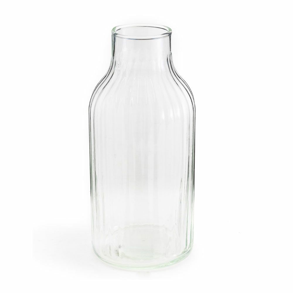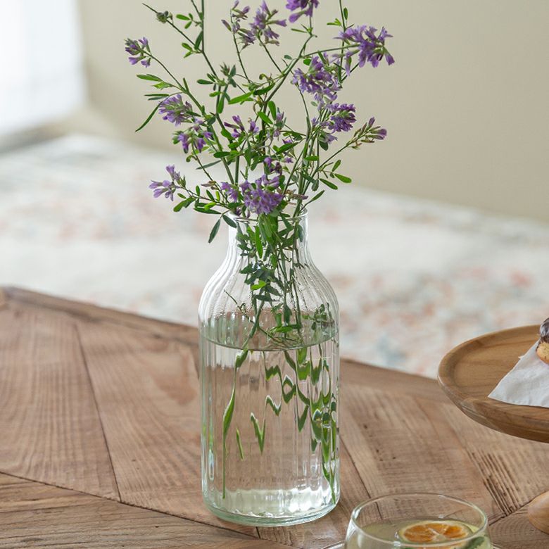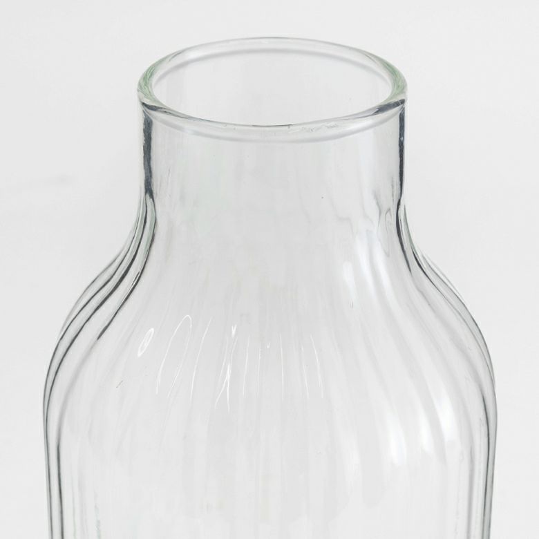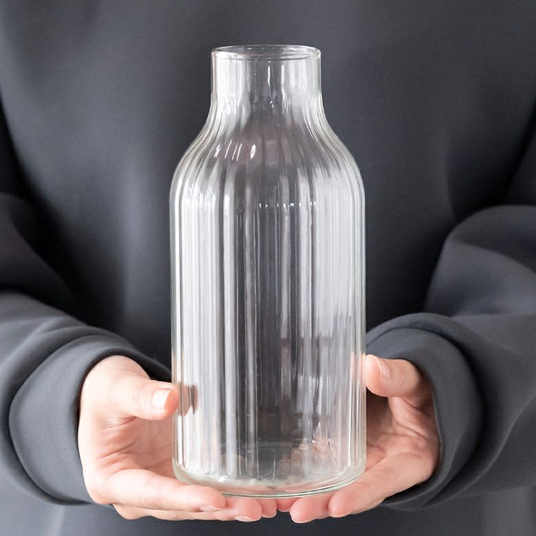 花器 ガラスフラワーベース 観葉植物 ギフト プレゼント 贈り物 フラワーベース 花瓶 ガラス クリア 直径 9cm 高さ 20cm [90426]【 ラウンド 縦長 縦縞 ライン ストライプ リサイクルガラス エコ ハンドメイド 手作り おしゃれ ナチュラル シンプル かわいい スタイリッシュ サスティナブル リューズガラス Horn Please MADE 志成販売】