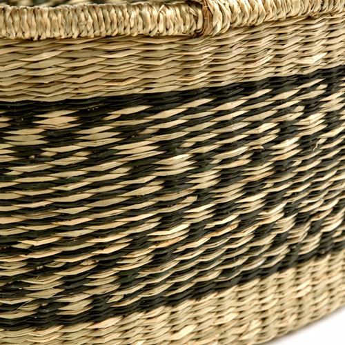 かごバスケット 収納かご ランドリー 洗濯かご ピクニック バスケット かご シーグラス製 シーグラス製 オーバル型 ナチュラル×黒 ボーダー柄 [51200]【 かごバスケット カゴ 収納かご 収納バスケット 北欧 BOHO ボーホー 収納 小物入れ 籠 カゴバスケット おしゃれ アジアン雑貨 アジアン 雑貨 バリ雑貨 】