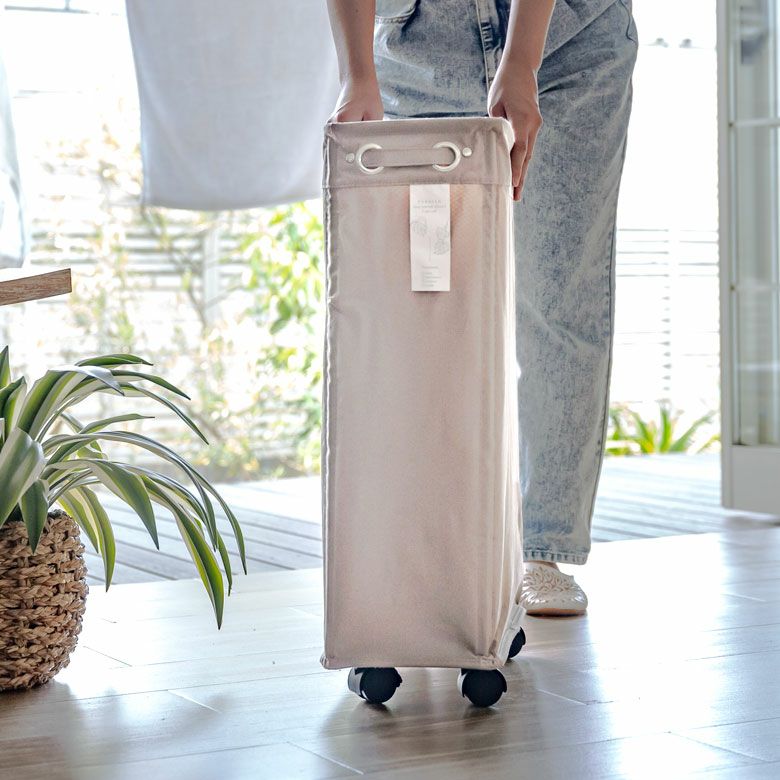 大型 布 ゴミ箱 ごみ箱 スクエア 持ち手 ハンドル インテリア ランドリーバスケット ランドリーボックス ランドリーワゴン キャスター付き スリム 約 W 19cm D 40cm H 60cm [67010]【 幅20cm (約) ランドリー ボックス バスケット ワゴン 脱衣かご 洗濯 かご ランドリー収納 洗濯物入れ 収納 シンプル おしゃれ 北欧 ナチュラル アジアン 雑貨 】