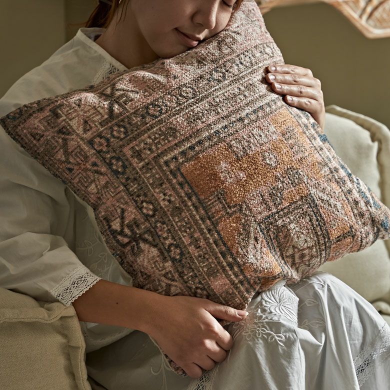 ファブリック クッションケース ソファ 寝室 クッション カバー アンティーク調 ペルシャ絨毯調 ビンテージ風 ビンテージ調 オールシーズン 春 夏 秋 冬 ギフト プレゼント クッションカバー オールドキリム風 正方形 四角 約 W 45cm D 45cm H 1cm 45角 45cm用 ベージュ インド ペルシャ絨毯風 オリエンタル アンティーク風 クッション用カバー ベッド リビング おしゃれ リゾート モロッカン エスニック 西海岸風 雑貨 [34590]