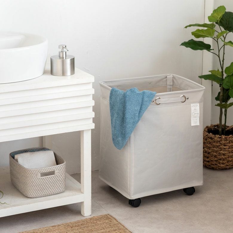 大型 布 ゴミ箱 ごみ箱 スクエア 持ち手 ハンドル インテリア ランドリーバスケット ランドリーボックス ランドリーワゴン キャスター付き 約 W 40cm D 33cm H 50cm [60102]【 ランドリー ボックス バスケット ワゴン 脱衣かご 洗濯 かご ランドリー収納 洗濯物入れ 大容量 収納 シンプル おしゃれ 北欧 ナチュラル アジアン 雑貨 】