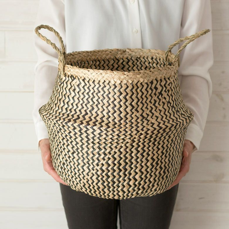 かごバスケット 収納 プランターカバー インスタ映え かご バスケット 収納 シーグラス製 折り畳み 2ウェイ[vk51211]【 北欧 持ち手 ブラック シェブロン ヘリンボーン カゴ 籠 収納バスケット ランドリーバスケット 小物入れ ハンドル 深い 大きい おしゃれ 北欧 エスニック アジアン雑貨 】