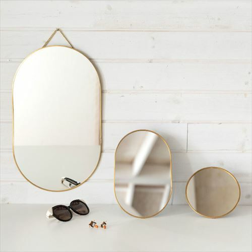 掛け鏡 楕円 小さめ コスメミラー 真鍮 フレーム アンティーク風 壁掛けミラー オーバル 真鍮フレーム ゴールド [66714]【 ミラー 鏡 ウォールミラー インテリアミラー オーバル型 オーバルタイプ 壁掛け 吊り下げ アンティーク調 化粧鏡 おしゃれ メイクアップミラー シンプル アジアン雑貨 アジアン 雑貨 】