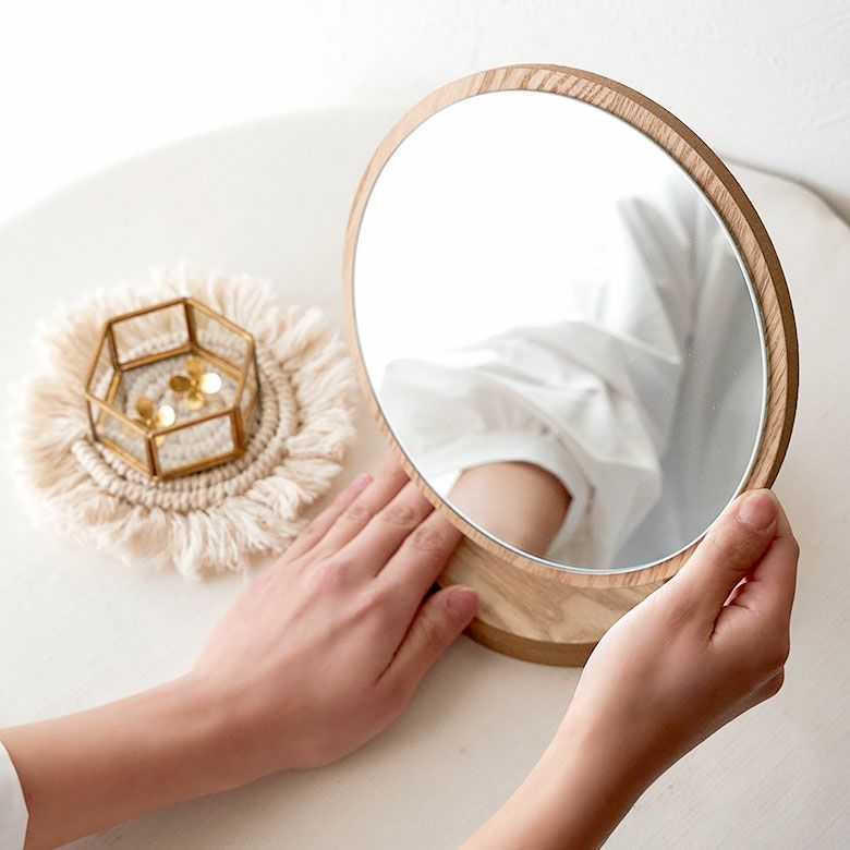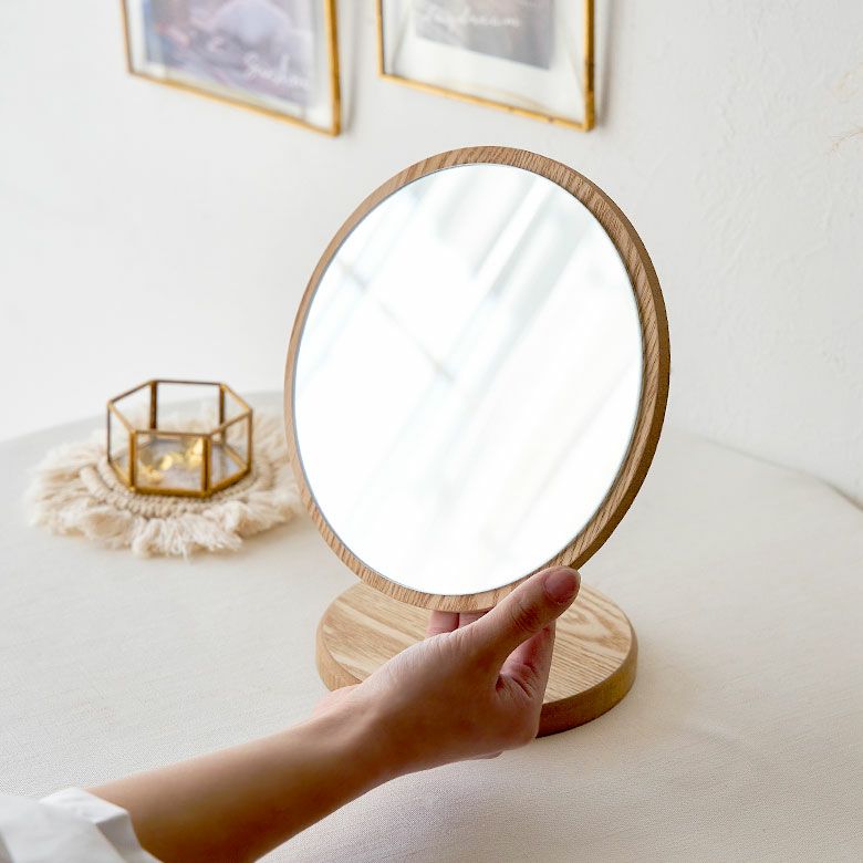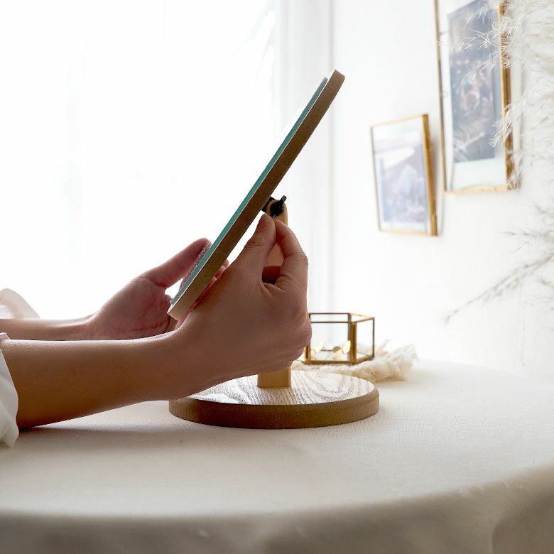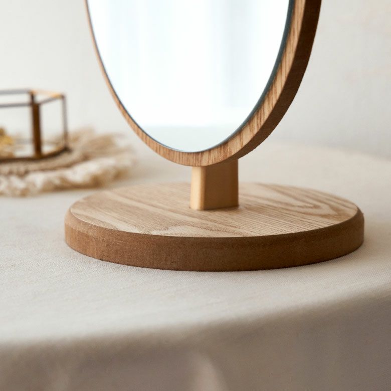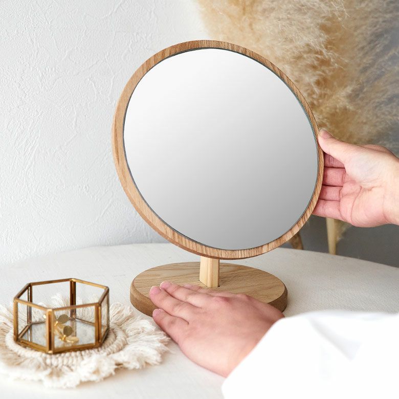 ドレッサー 化粧台 メイク用 置き型 角度変更 新生活 引越し 卓上ミラー 卓上鏡 木製 円形 丸型 角度調節 約 W 21 × D 15 × H 25 cm 鏡 かがみ スタンドミラー スタンド鏡 化粧鏡 立て掛け メイク鏡 丸い 置き鏡 テーブルミラー 玄関 トイレ 洗面所 ホテル用 おしゃれ 北欧 かわいい アジアン 雑貨 アジアン雑貨 和 和モダン 67105