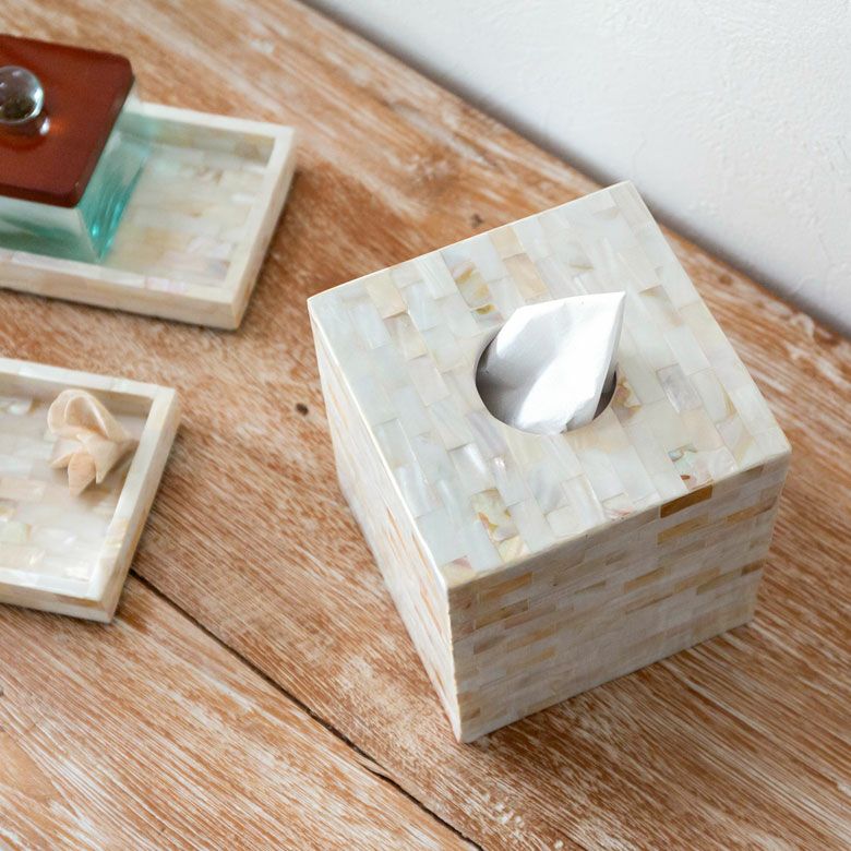 ティッシュ ボックス ケース オシャレ 花粉症 ティッシュケース ティッシュボックス シェル パールシェル ウッド 貝 貝殻 約 W 27 × D 14 × H 9 cm ティッシュカバー ティッシュケースカバー ティッシュBOX 卓上 収納 インテリア 収納ケース アンティーク 風 おしゃれ かわいい 北欧 アジアン雑貨 アジアン 雑貨 [8430]