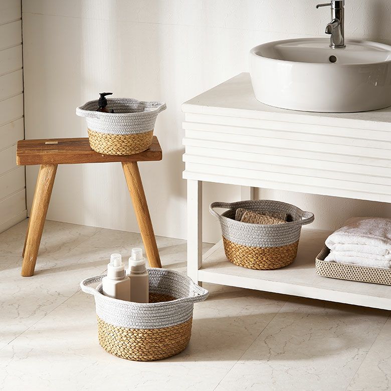 ロープバスケット 自立 ラウンド 重ねて収納 スタッキング ハンドル コットンロープ カラーボックス対応 カウンター収納 リビング ダイニング キッチン 玄関 子供部屋 プレゼント バスケット 3個セット コットンロープ ラッシュ製 持ち手付き バイカラー S.M.L かごバスケット 収納 かご 籠 丸 円形 丸型 プランターカバー 鉢カバー サイズ違い 5号鉢 6号鉢 7号鉢対応 インテリア おしゃれ 北欧 アジアン 雑貨 アジアン雑貨 [set-67119-67121]