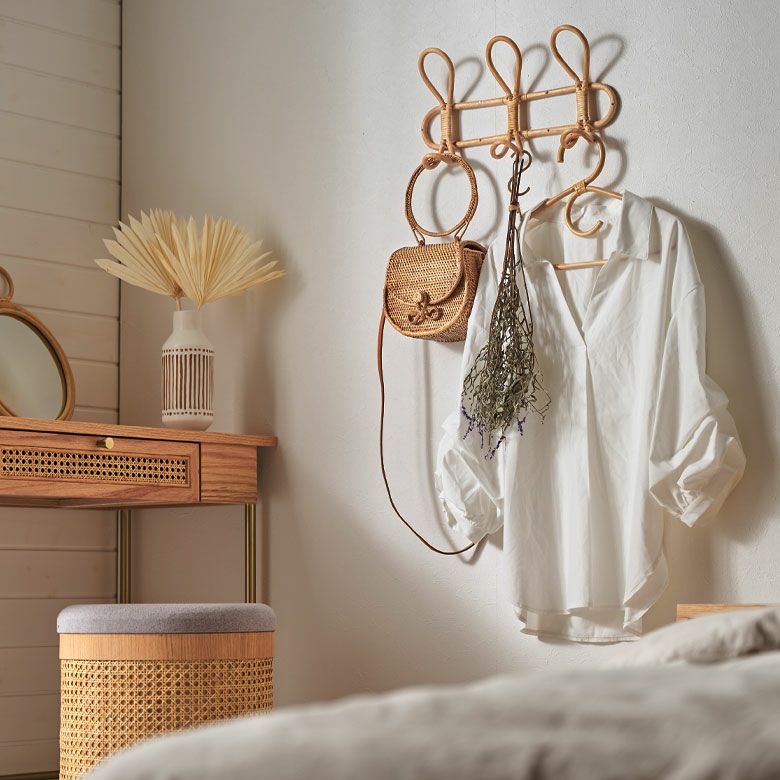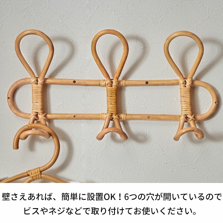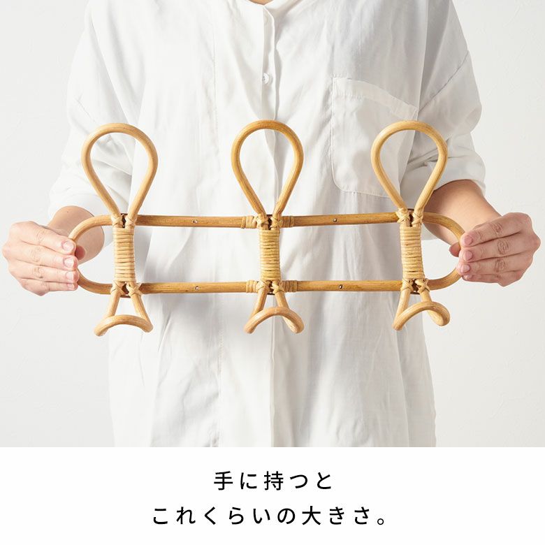 ラタンフック 壁フック 壁掛け ダブルフック コートハンガー 壁面収納 ウォールシェルフ ハンガーフック ヴィンテージ風 ビンテージ風 フック付き シンプル ディスプレイ オブジェ フック ラタン 籐 天然素材 ウォールハンガー 3連 約 W 40cm D 6.5cm H 20cm ナチュラル ベージュ 壁掛けフック 壁面 フック 壁 ウォールフック ハンガーラック ウォールラック ウォールシェルフハンガー インテリア 軽量 おしゃれ 北欧 リゾート 雑貨 アジアン [14032]