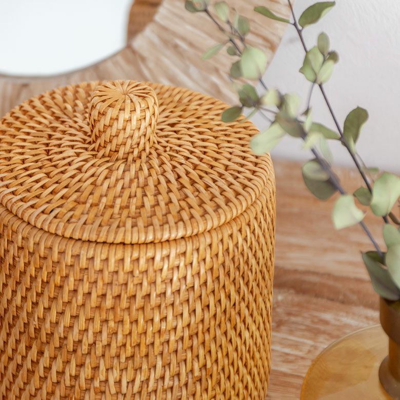蓋 ふた フタ 付き モダン 収納 ストッカー ホテル カフェ トイレットペーパーケース かご 籠 カゴ ボックス ケース ラタン 籐 ホワイト ナチュラル 約 W 14cm D 14cm H 15.5cm [13981]【 小物 アクセサリー ロールペーパー 入れ トレイ キッチン リビング アメニティ 北欧 リゾート コースタル バリ アジアン 雑貨 】