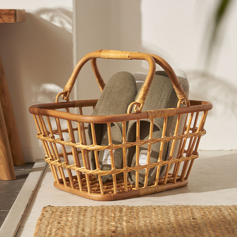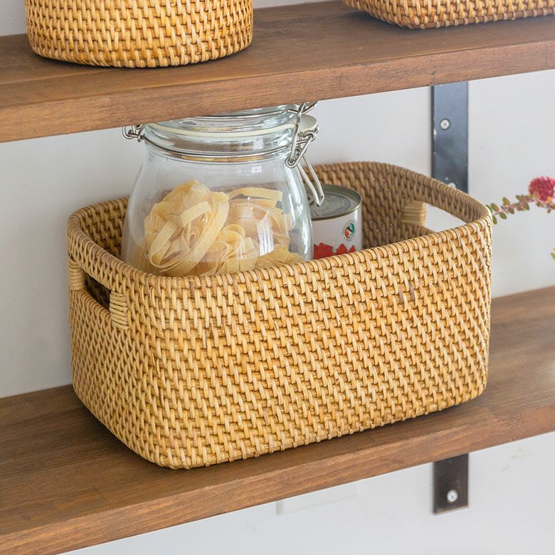 おもちゃ入れ 小物入れ 荷物入れ ハンドメイド リビング ひざ掛け 店舗 カフェ レストラン エステ シンプル モダン カゴ 籠 洗面所 バスルーム ギフト プレゼント バスケット かご Sサイズ 通気性 ラタン 籐 ハンドル付き 約 W 36cm D 28cm H 19cm 果物かご 野菜かご 果物 野菜 ナチュラル スタッキング かごバスケット 収納 収納バスケット 衣類 おもちゃ 荷物 スリッパ タオル 入れ おしゃれ 北欧 雑貨 インテリア アジアン [14060]