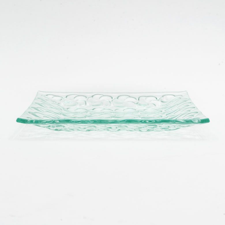 ワンプレート ケーキ皿 パスタ皿 食卓 ディナー ランチ ガラス ガラスプレート プレート スクエア Lサイズ 約 W 19.5cm D 19.5cm H 2cm クリア 食器 ガラス皿 皿 スクエア皿 大皿 四角 スクエアプレート 角皿 前菜 花 プランジパニ エスニック バリ島 リゾート おしゃれ インテリア 雑貨 アジアン [62223]