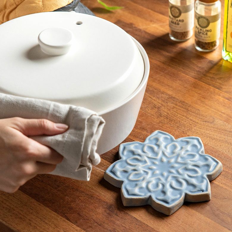 flower エスニック スタイル リビング ダイニング 装飾 焼き物 タイル 花 フラワー スカイブルー セラミック 陶器 コースター 直径 15cm [51174]【 アラビア風 アラビア キッチン コーデ 台所 テーブル コーディネート リゾート スタイル アンティーク デザイン インテリア雑貨 陶磁器 おしゃれ 鍋敷き 花瓶敷き アジア アジアン雑貨 】