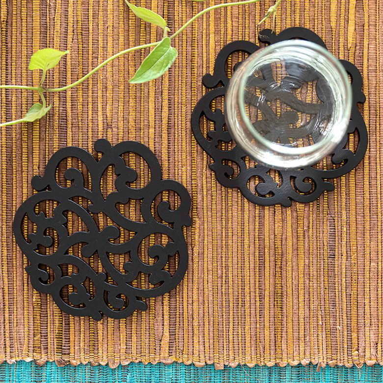 木製アジアンコースター。飲み物のグラスはもちろん、カップに入ったデザートのトレイにすればおうちカフェ気分が味わえるバリ島の人気アジアン雑貨。 【メール便対応】モダンなデザインの木製アジアンコースター[11391]【 MULIA ムリア 木彫り 円形 丸型 丸いコースター おうちカフェ キッチン雑貨 トレイ トレー テーブルウェア モダン おしゃれ ナチュラル ソーサー 受け皿 バリ 】