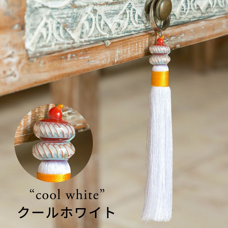 バリ島直輸入! とんぼ玉付きロングタッセルのキーホルダー。 バリで見つけたとんぼ玉付き タッセル キーホルダー(13490-13491-13492-13493-13494)【チャーム バッグチャーム ロングタッセル 緑 ピンク 紫 白 オレンジ ビーズ ガラス 雑貨 アジアン バリ インドネシア ハンドメイド おしゃれ かわいい カラフル プレゼント ギフト】