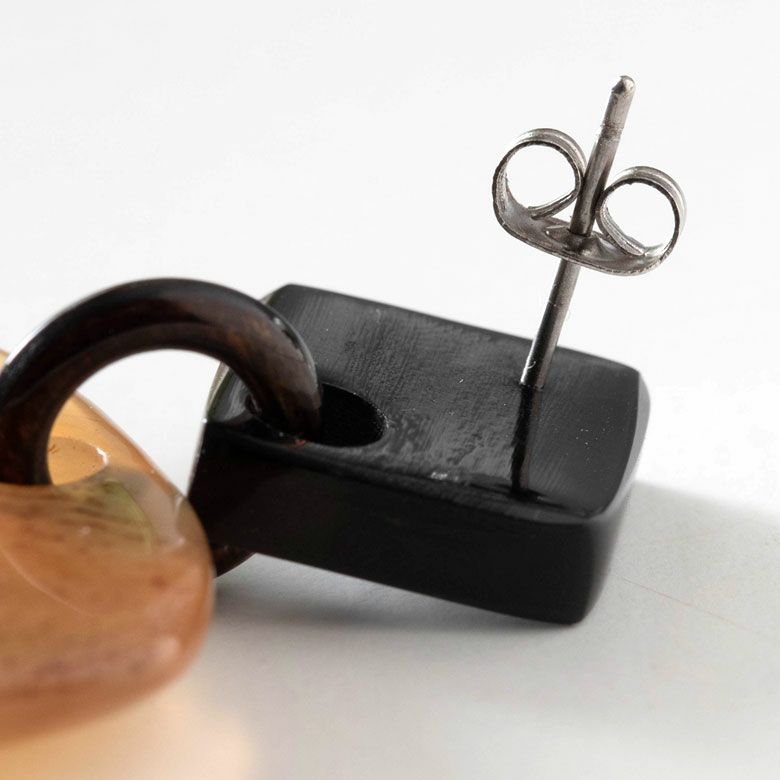 エスニック かわいい オフィス レディース 【メール便対応】キャトルホーン ピアス アクセサリー バイカラー ゴールド シルバー ブラック ブルー ピンク ナチュラル W 3.2cm D 2cm H 6.8cm [51254]【 アジアンファッション ギフト プレゼント おしゃれ シック カジュアル エレガント リゾート アジアン 雑貨 】