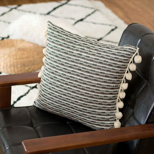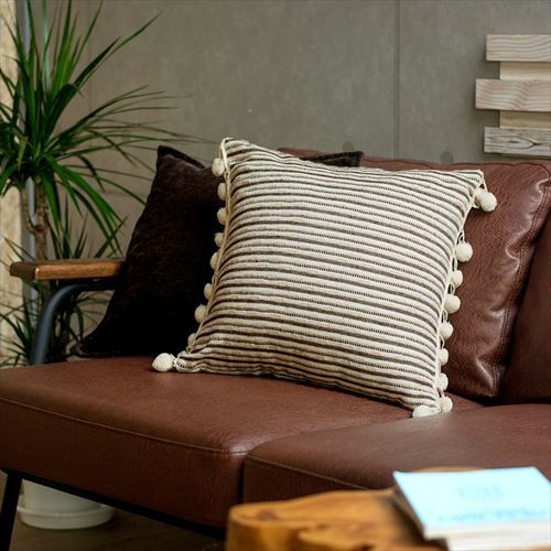 クッション クッションカバー ベージュ系 リゾート アジアン雑貨 【メール便対応】 クッションカバー ポンポン付き ジャガードボーダー柄 ベージュ系 ブラウン系 約45×45cm 正方形 [66559 66560]【 ソファークッション ベッドクッション 45角 ストライプ おしゃれ 可愛い 北欧 プレゼント ギフト アジアン雑貨 アジアン 雑貨 】