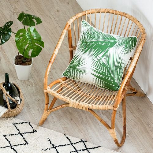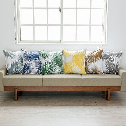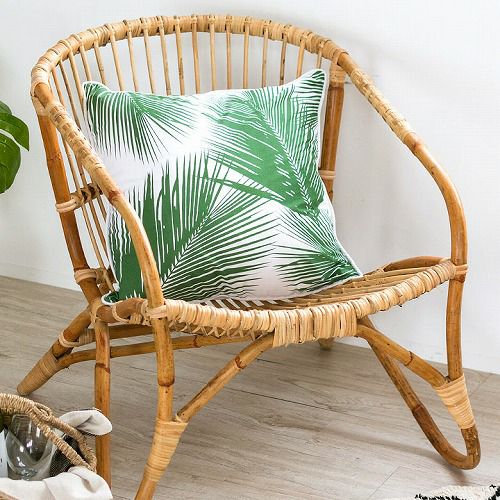 クッションカバー パームリーフ リーフ柄 ボタニカル 【メール便対応】クッションカバー ミニポンポン付き リーフ柄 プリント オレンジ 約45×45cm 正方形 [66558]【 ソファークッション ベッドクッション ボタニカル ヤシの木 45角 おしゃれ 北欧 アジアン雑貨 アジアン 雑貨 リゾート バリ島 ハワイ ハワイアン 】