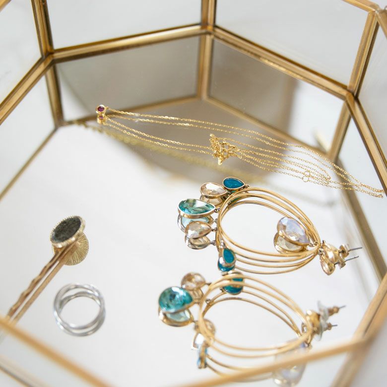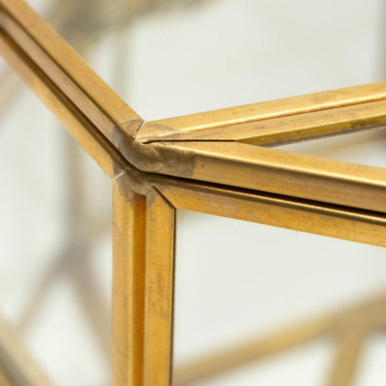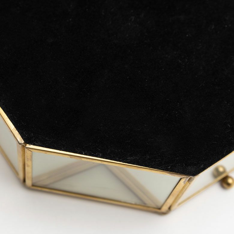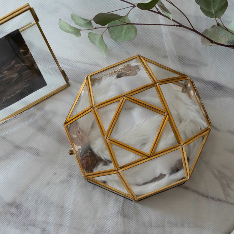ディスプレイケース ダイヤ型 ダイヤモンド型 ガラスボックス ガラスと真鍮でできた 収納ケース 鏡付き 八角 [66712]【 ディスプレイケース 小物入れ ガラスボックス おしゃれ 可愛い 透明 ガラスケース アクセサリーケース ジュエリーボックス アクセサリー入れ コレクション ゴールド アジアン雑貨 アジアン 雑貨 】