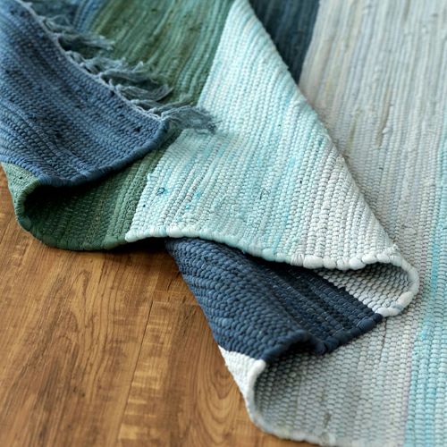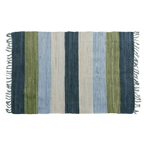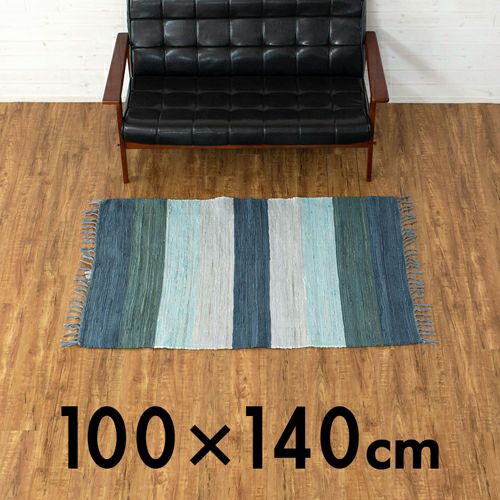 キリムラグ ラグマット インド綿 青 エスニックラグ ネイティブ コットン ラグ カーペット ラグマット ワイドボーダー柄 フリンジ付き 綿100% 100×140cm ブルー [34404-bl]【 コットンキリム マット キリム風ラグ ストライプ柄 リビング かーぺっと らぐ おしゃれ 夏用 オールシーズン 綿 インテリア アジアン 雑貨 アジアン雑貨 】