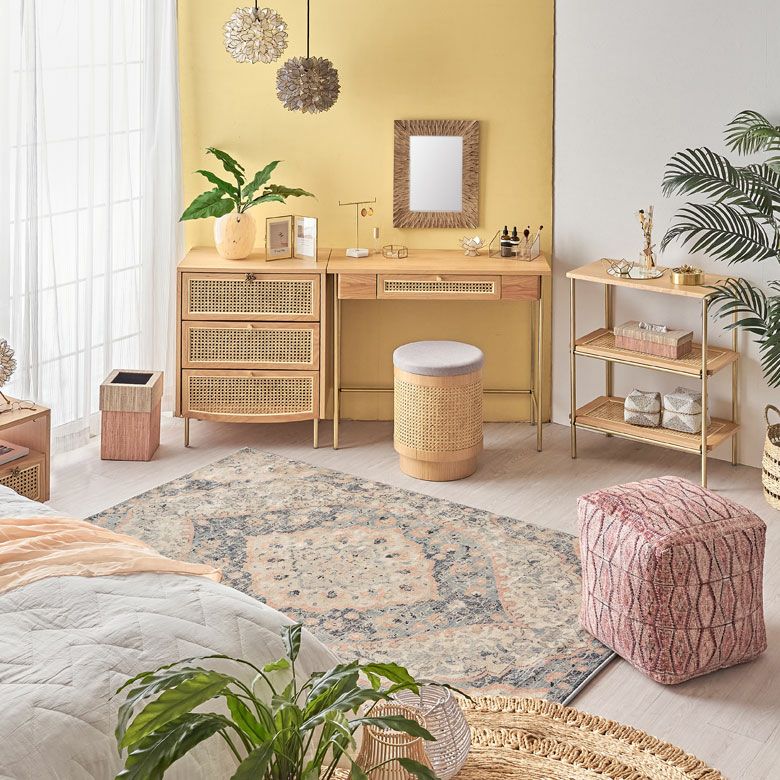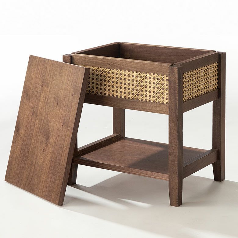 天然木 収納付き コンソールデスク 天然素材 メイク台 木製ドレッサー 一人暮らし 小物収納 コスメ収納 寝室 リビング リモートワーク pcデスク バリ島 ホテル 店舗 サロン ヴィラ ウォールナットの木目とラタンメッシュのコンビネーションがリゾート感を醸し出すコンパクトなアジアンドレッサー(ティレムエレガンシリーズ) [67187]