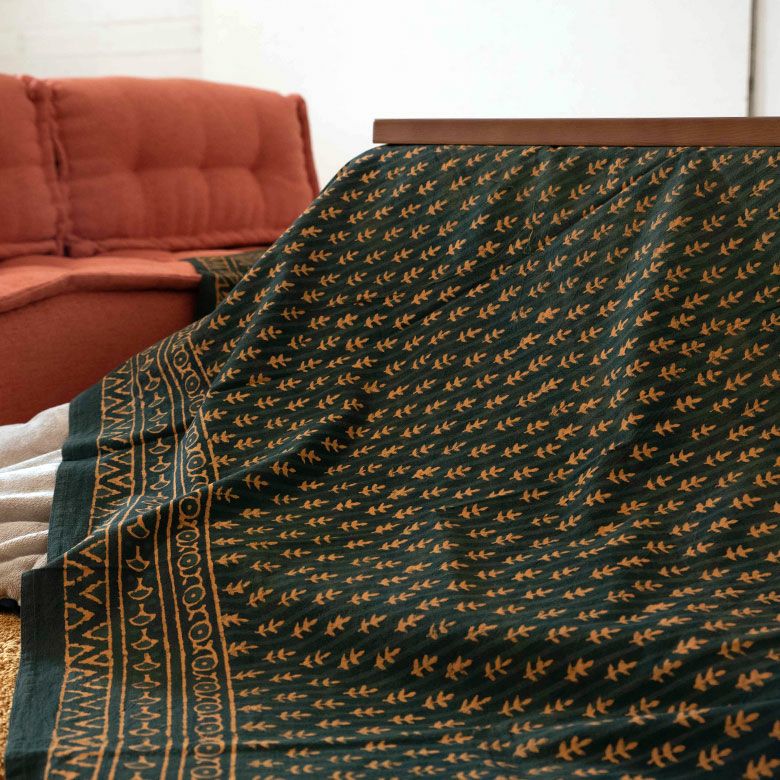こたつ上掛けカバー こたつ布団カバー ソファ テーブル ベッド ブロックプリント インド 柄 マルチクロス 200×200cm 大判 コットン クロス [90224]【 マルチカバー こたつ コタツ こたつ布団 コタツ布団 洗える 洗濯 上掛け 正方形 リメイク 模様替え テーブルクロス カーテン 布 ファブリック おしゃれ かっこいい インテリア】