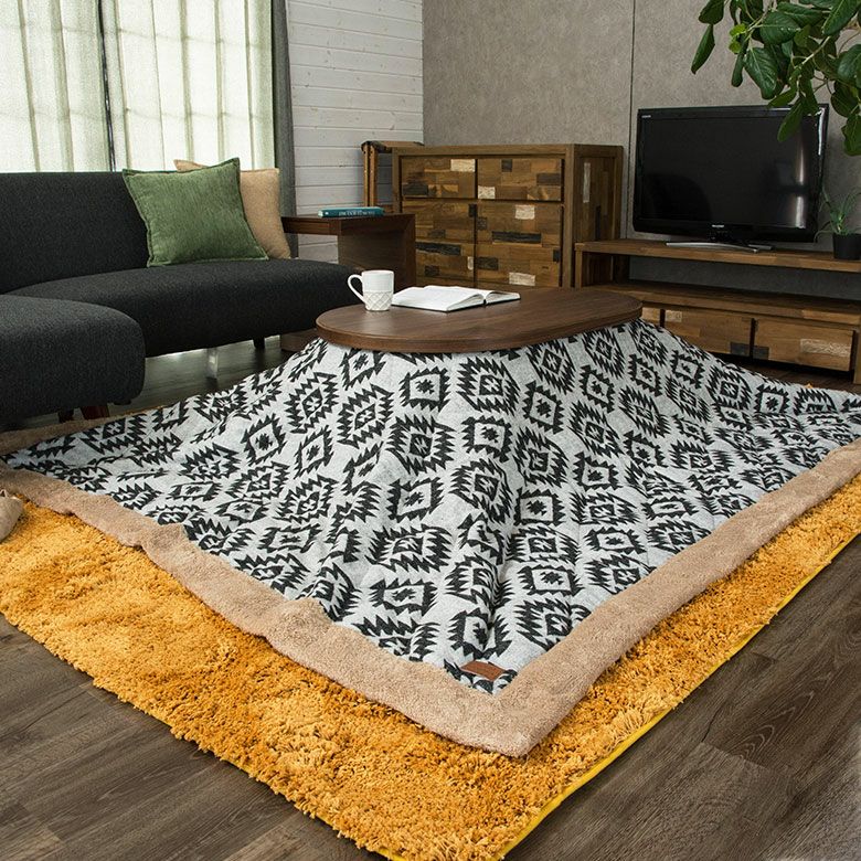 かわいい ナチュラル 薄掛け カジュアル 暖房器具 こたつ布団 正方形 ジオメトリック柄 幾何学模様 幅 約190×190cm フランネル グレー イエロー ビタミンカラー [70007-gy]【 ボア付き こたつ なめらか 肌触り ふんわり 省スペース こたつ 布団 おしゃれ こたつ掛け布団 コタツ布団 炬燵 カジュアル 】