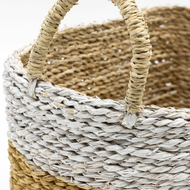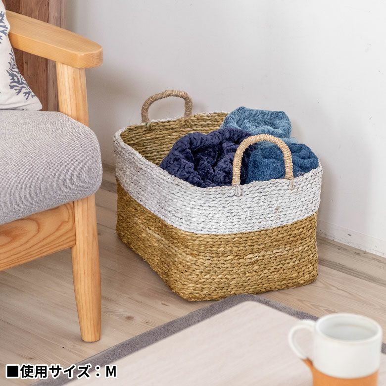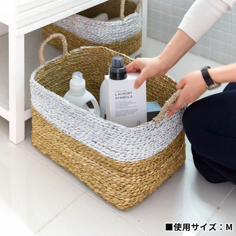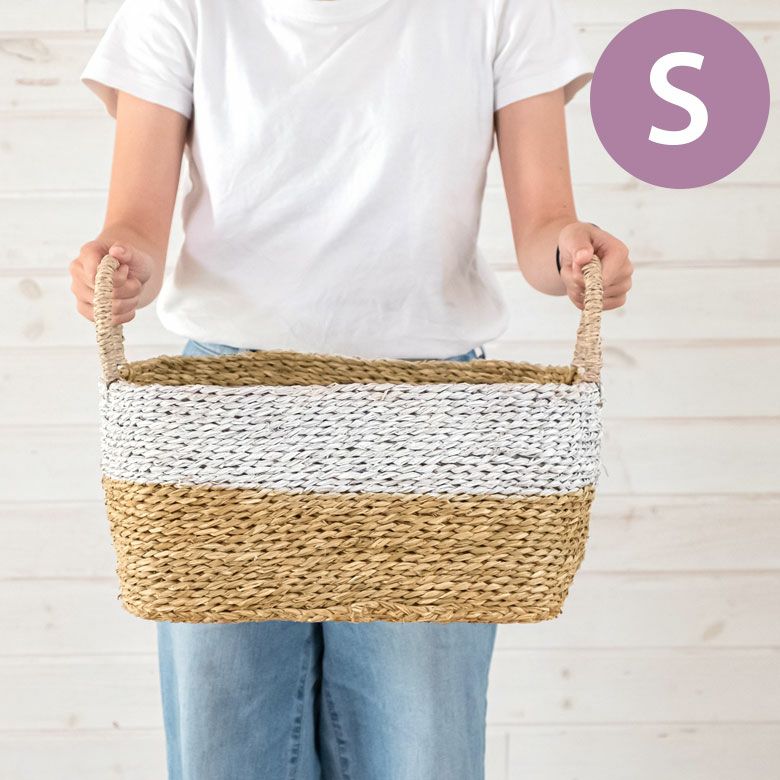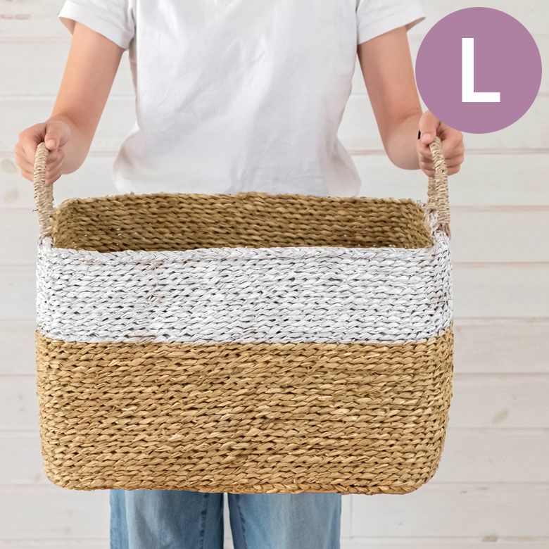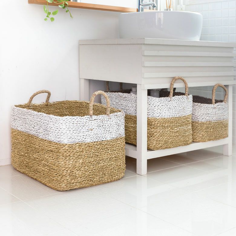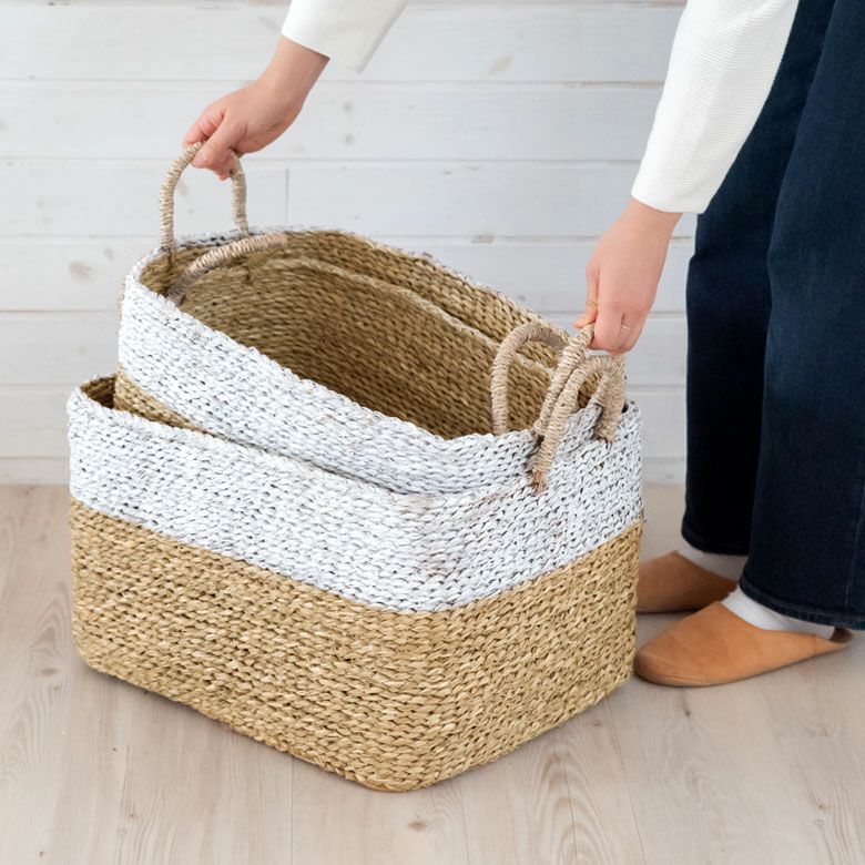かごバスケット 収納かご ナチュラル雑貨 取っ手付き スクエア型 バスケット かご スクエア バイカラーバスケット シーグラス 持ち手つき S M L 3個セット ナチュラル ホワイト [set-va51221-22-23]【 カゴ 籠 収納バスケット おもちゃ入れ 洗濯かご ランドリーバスケット お洒落 おしゃれ キッズルーム リビング アジアン 雑貨 アジア 】