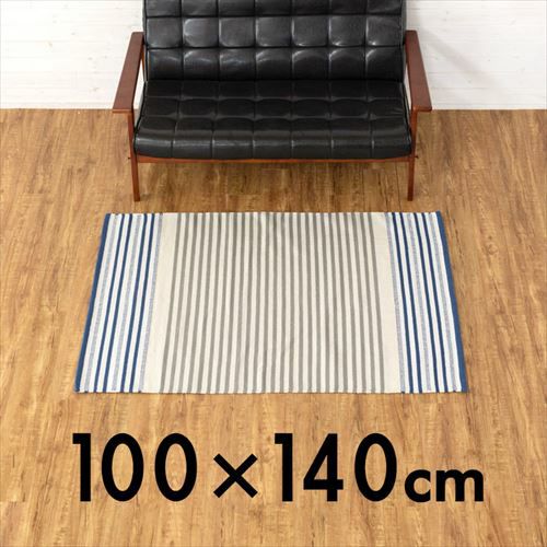 キリムラグ ラグマット インド綿 青 エスニックラグ ネイティブ コットン ラグ カーペット ラグマット ボーダー柄 綿100% 100×140cm ブルー [34304]【 コットンキリム おしゃれ ラグカーペット ストライプ柄 キリム風ラグ 長方形 リビング かーぺっと らぐ おしゃれ 夏用 オールシーズン 綿 インテリア アジアンラグ アジアン 雑貨 】