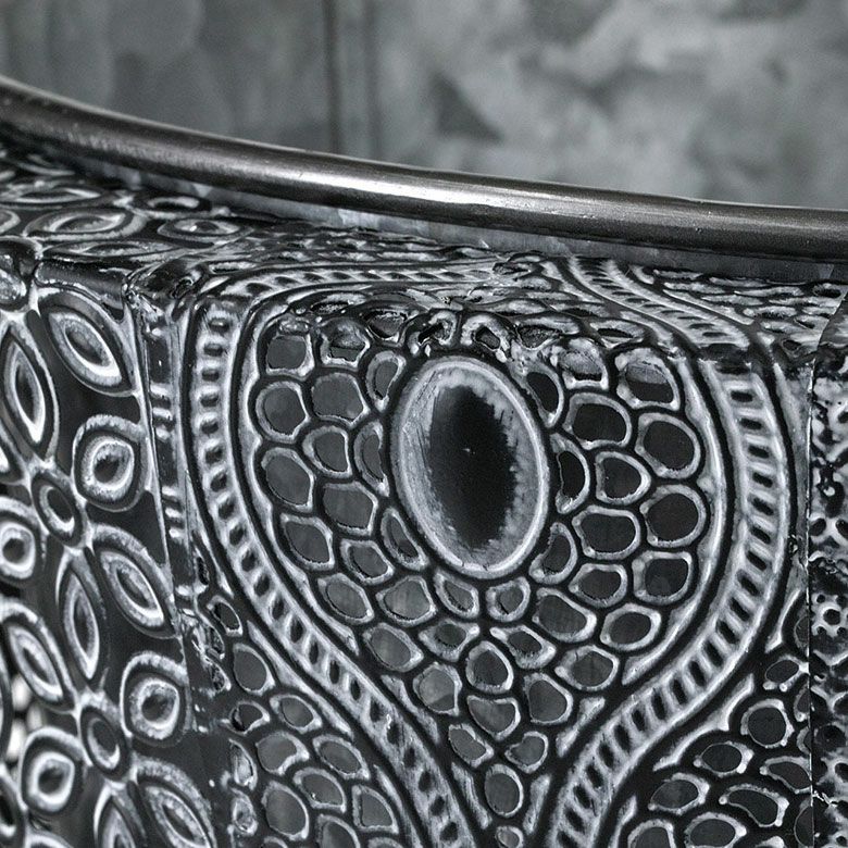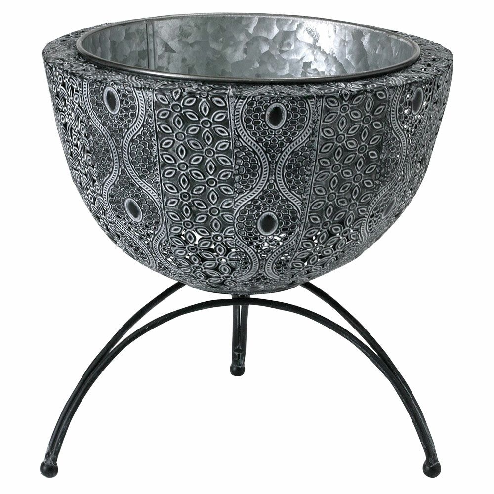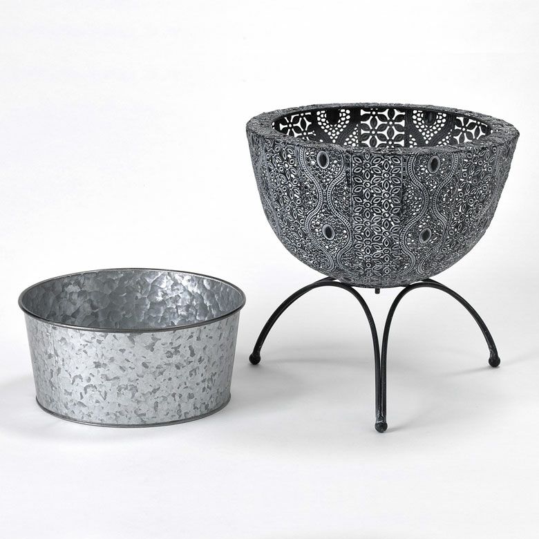 メタルポット ディスプレイ ブラックアイアン アイアン脚 フラワーポット プランターカバー スチール 脚付き Lサイズ 直径30cm [90090]【 ディスプレイスタンド フラワースタンド アイアン ブラック グレー 植木鉢カバー 透かし模様 透かし彫り アラベスク柄 おしゃれ ポット型 スタンド型 リゾート シャビーシック SPICE】