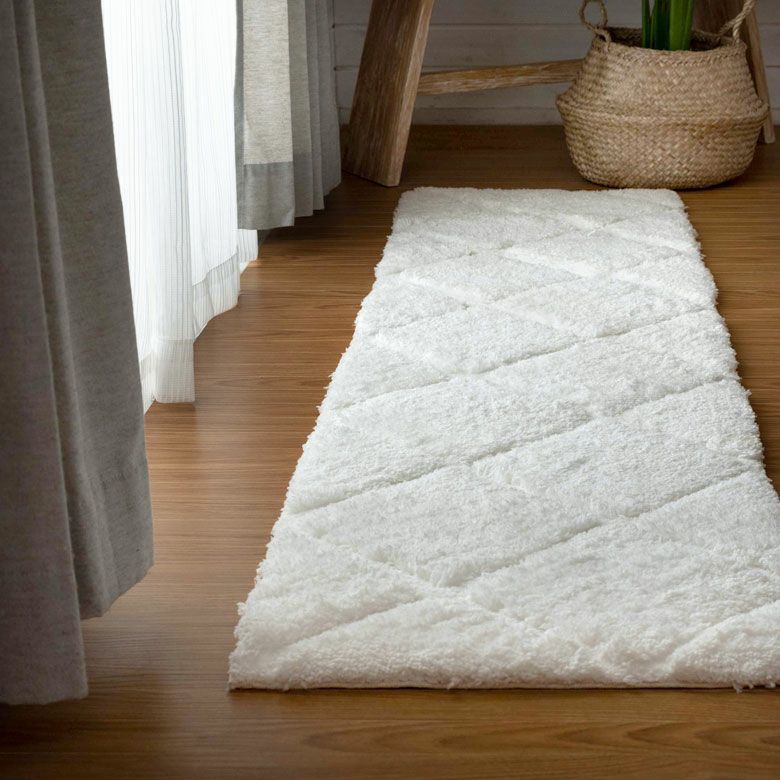 3Dマット 3Dデザイン じゅうたん 絨毯 敷物 オールシーズン ラグマット 約 45 × 180 cm ノンスリップ 加工 凹凸 3Dデザインマット 立体 [66926]【 ラグ カーペット マット 強力滑り止め付き おしゃれ 白 ホワイト 長方形 シャギー 床暖房対応 ホットカーペット対応 ふわふわ 北欧 モロッカン エスニック 】