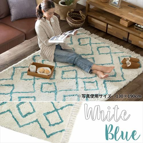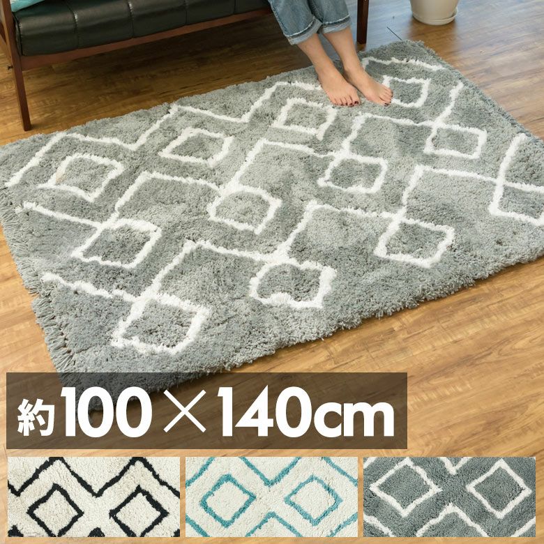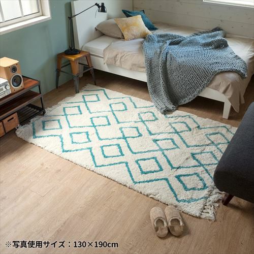 ベニオワレン風ラグワンルームや一人暮らしにおすすめサイズ ラグ ラグマット 100cm×140cm ベニオワレン風 ダイヤ [b3c-83]【ラグ カーペット 床暖房対応 おしゃれ 長方形 ラグ 絨毯 じゅうたん オールシーズン 春 夏 秋 冬 ベニオワレン風 モロッカン モロカン アジアン リゾート 玄関マット 水色 白 グレー 100×140 敷物】