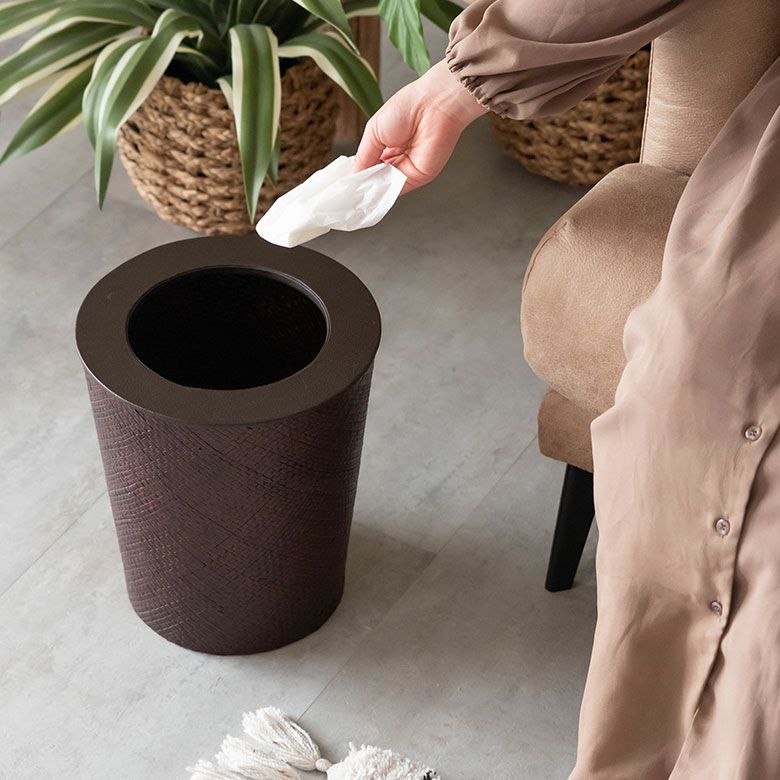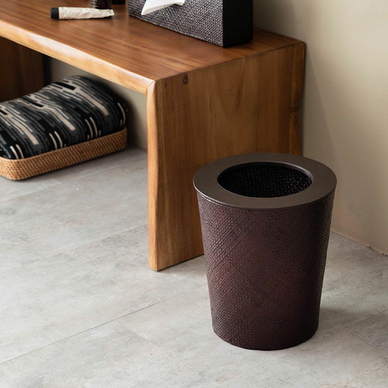 ふた フタ カバー ホテル 収納 ボックス ストッカー カフェ 分別 ゴミ箱 ダストボックス おしゃれ 蓋 付き バスケット かご カゴ パンダン ブラウン 約 W 25cm D 25cm H 28.4cm [13974-db-13975-db]【 ごみ箱 丸型 円形 丸い 高級感 上品 ハイクオリティ モダン シック リビング 寝室 バス 洗面所 北欧 リゾート バリ アジアン 雑貨 】