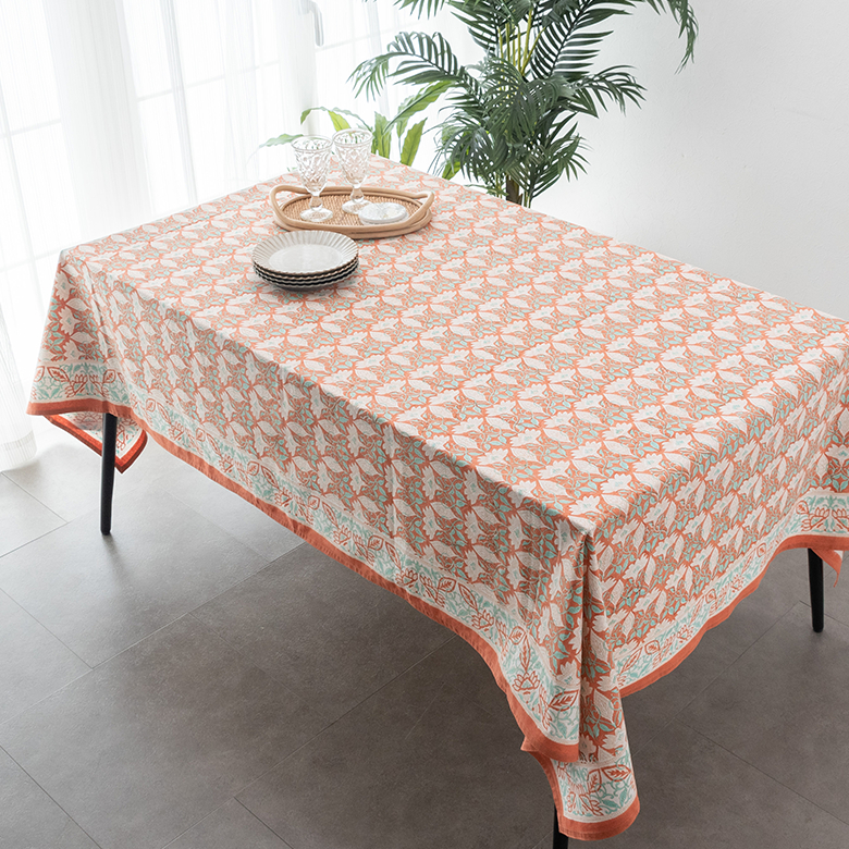 大判 テーブルウェア テーブル マット アジア カフェ テーブルクロス インド ブロック プリント 柄 綿 コットン W 150cm D 220cm H 1cm マルチ クロス カバー オレンジ [34453-og]【 テーブル カバー 布 ダイニング ディナー ランチ キッチン クリスマス パーティー おしゃれ リゾート モダン アジア エスニック アジアン 】