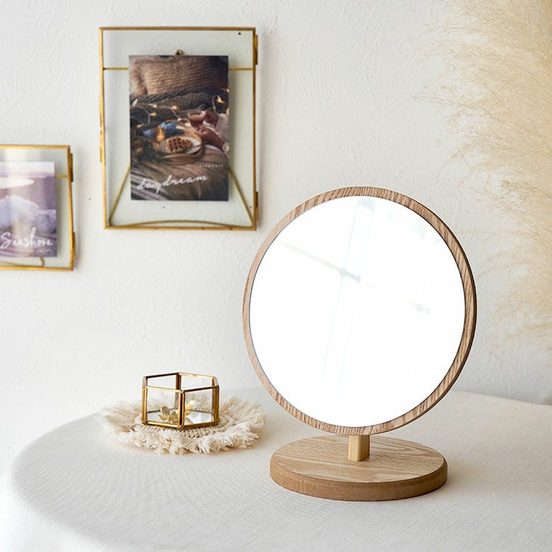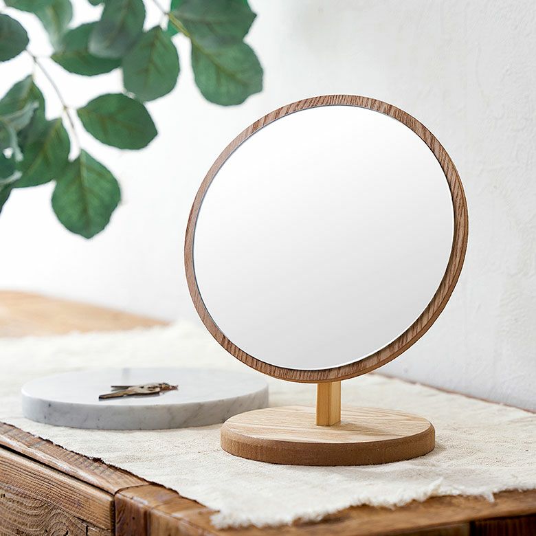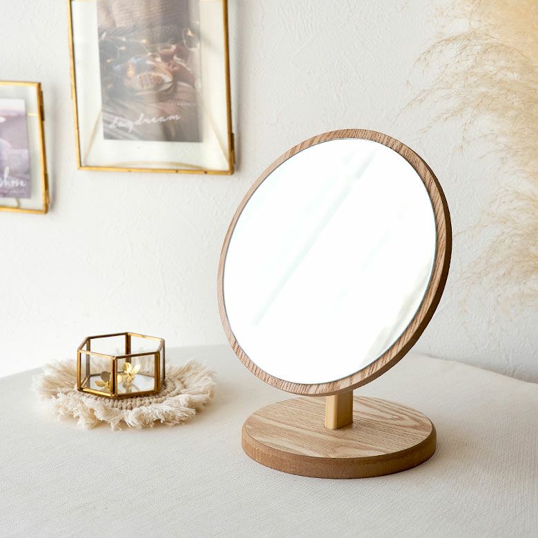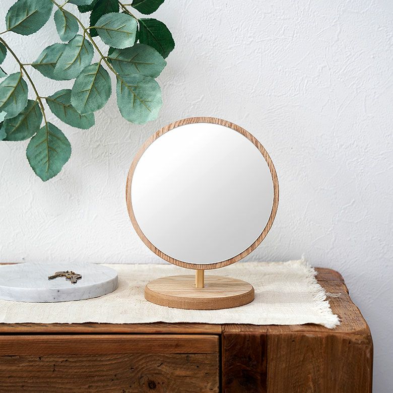 ドレッサー 化粧台 メイク用 置き型 角度変更 新生活 引越し 卓上ミラー 卓上鏡 木製 円形 丸型 角度調節 約 W 21 × D 15 × H 25 cm 鏡 かがみ スタンドミラー スタンド鏡 化粧鏡 立て掛け メイク鏡 丸い 置き鏡 テーブルミラー 玄関 トイレ 洗面所 ホテル用 おしゃれ 北欧 かわいい アジアン 雑貨 アジアン雑貨 和 和モダン 67105