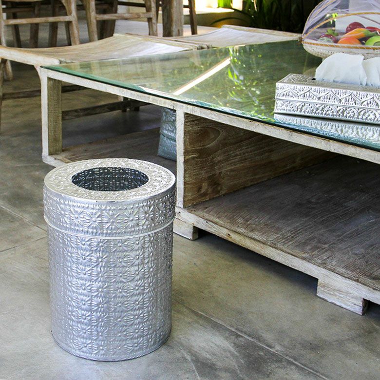 おしゃれで可愛いバリ島の人気アジアン雑貨 新生活 アルミ製インナー付きゴミ箱 ラウンド型[シルバー][11931-sv]【ダストボックス くずかご ごみばこ 縦型 アジアン リビング バリ雑貨 アジアン雑貨 アジアン家具 おしゃれ トラッシュ ボックス ごみ箱 インテリア 寝室 アジア雑貨 くず入れ 屑籠 見えない ソカシ】