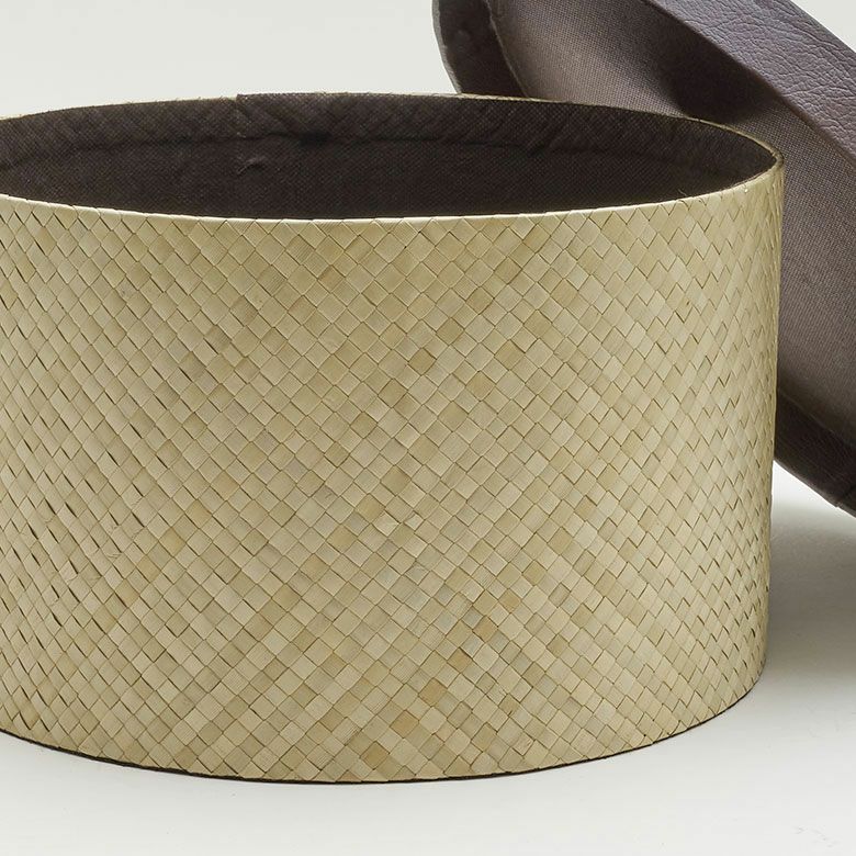 レザーのようなおしゃれな編み目の丸型収納ケース。帽子収納 ハットボックス キャップ収納 帽子 の 収納 丸箱 ケースボックス ギフトボックス プレゼント 包装資材 パンダン製フタ付きラウンドボックス Lサイズ 2色展開 小物入れ 収納ボックス フタ付 整理ボックス 収納箱 インテリアボックス おしゃれ収納 バリ 雑貨 アジアン雑貨 バリ雑貨 入れ物 ナチュラル雑貨 蓋つき ふた付き 収納ケース 南国リゾート ハワイ [pb-11]
