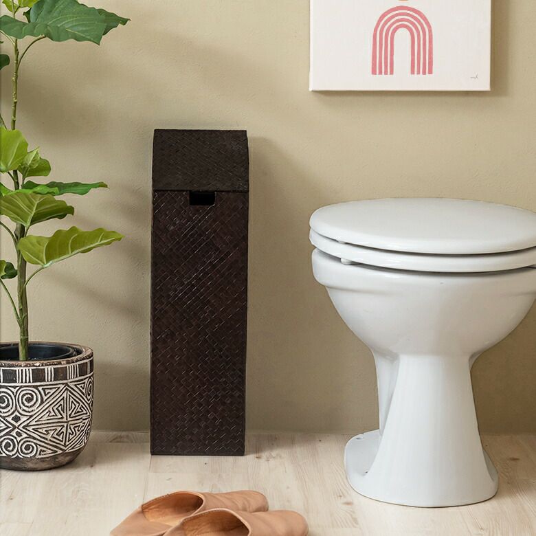 レザーのような編み目のパンダン製トイレットペーパー収納ケース パンダン製トイレットペーパーケース スクエア型 2色展開[11705-11706]【トイレットペーパー ホルダー ケース カバー ティッシュケース バリ雑貨 アジアン雑貨 おしゃれ モダン エスニック 卓上 バリ島 ロールペーパーホルダー トイレットペーパー ティッシュカバー】