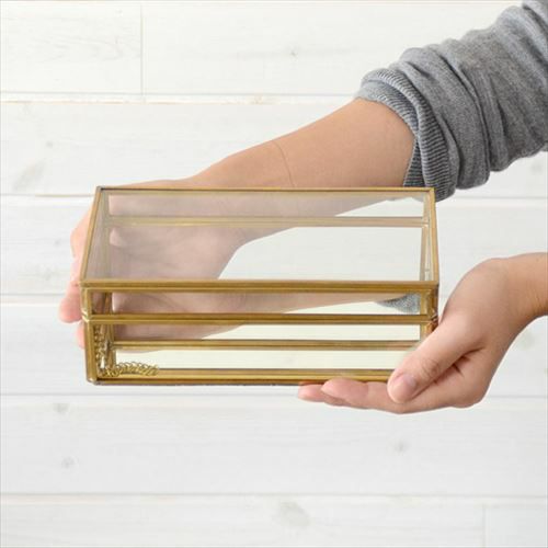 アクセサリーケース ディスプレイ 小物入れ ゴールド リゾート ガラスと真鍮でできたストッパー付き収納ケース(63240) 【 ディスプレイケース 小物入れ ガラスボックス おしゃれ ガラスケース アクセサリーケース ジュエリーボックス アクセサリー入れ 四角 コレクション ゴールド小物収納 蓋 塩系 インテリア 男前 アジアン雑貨】
