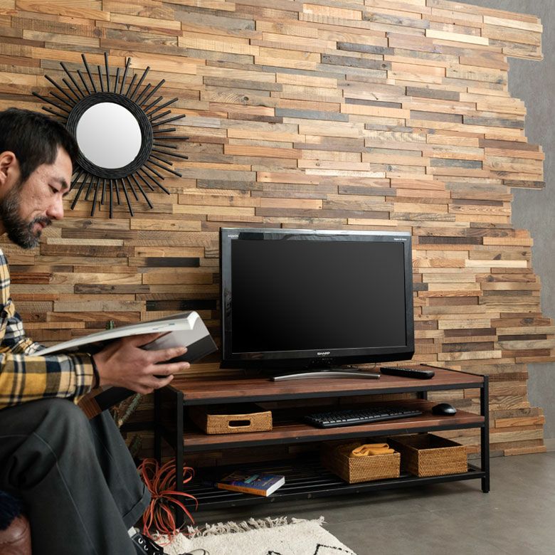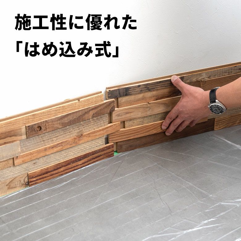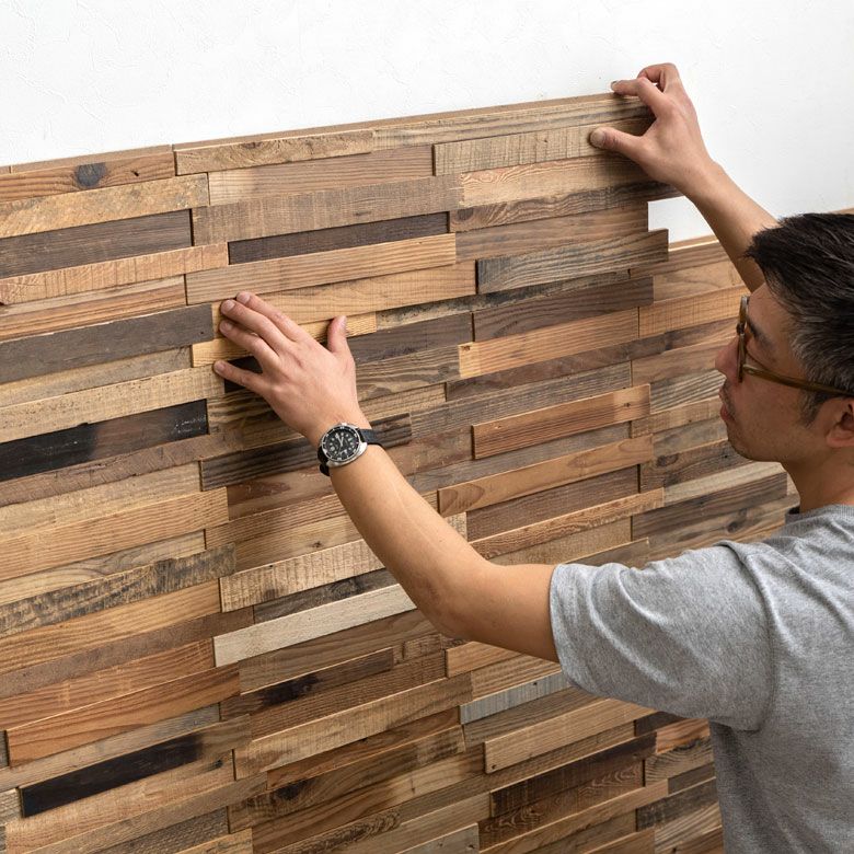 ウッドパネル 足場板 板 スティックウッド 壁面 貼る 粘着 古材ウッドウォールパネル エイジド3D [83211]【 ウォールパネル 壁材 壁紙 ウッド 古材 ジョイント式 模様替え DIY リクレイムドウッド 凹凸 ビンテージ アンティーク ラスティック アクセントウォール アンティーク風 ユーズド加工 ヴィンテージ風 】