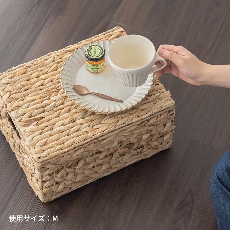 蓋 フタ つき おもちゃ箱 トイレ おむつ ランドリーバスケット かご バスケット ウォーターヒヤシンス M L 2個セット ふた付き 約 W 43cm D 35cm H 23cm [set-51278-51279]【 カゴ 収納バスケット 収納ボックス 荷物 おもちゃ 雑貨 衣類 収納 入れ ケース ハンドル 持ち手 付き おしゃれ 北欧 リゾート ナチュラル アジアン 雑貨 】