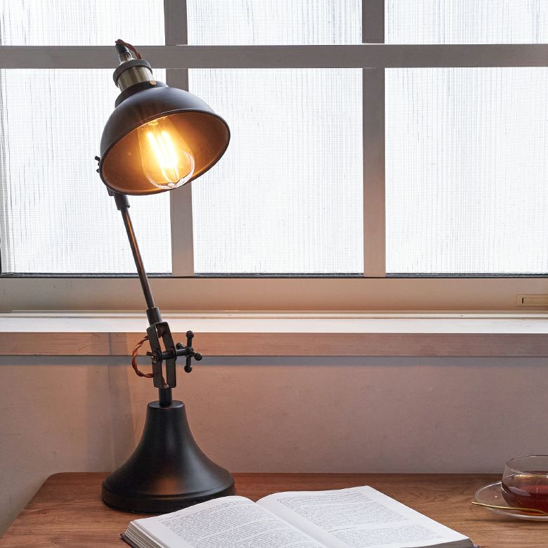 照明 デスク照明 無段階調整 スタンド デスク 在宅ワーク デスクライト スタンドライト W 20 × D 16 × H 26 電球付き ブラック 高さ 角度 調整 [91531]【 ライト デスク照明 スタンド照明 おしゃれ ヴィンテージ アンティーク調 黒 金 ゴールド リモートワーク テレワーク リビング学習 在宅勤務 リビング 書斎 寝室 アジアン 】