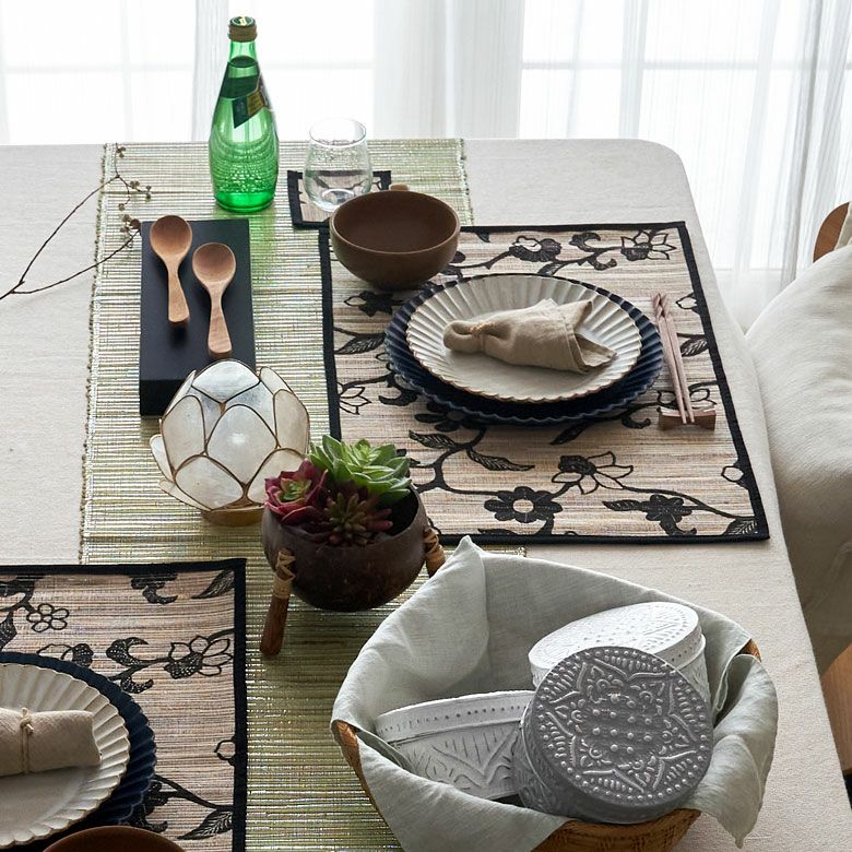天然素材を使ったアジアンコースターとランチョンマットのセット。カフェ気分が味わえるバリ島の人気アジアン雑貨。 ウォーターヒヤシンスで編まれた花柄デザインのアジアン ランチョンマットとコースター6枚セット L 正方形 四角形 キッチン雑貨 テーブルウェア モダン おしゃれ かわいい 天然素材 アジアン雑貨 プレースマット プレイスマット アジアンランチョン マット [7532]