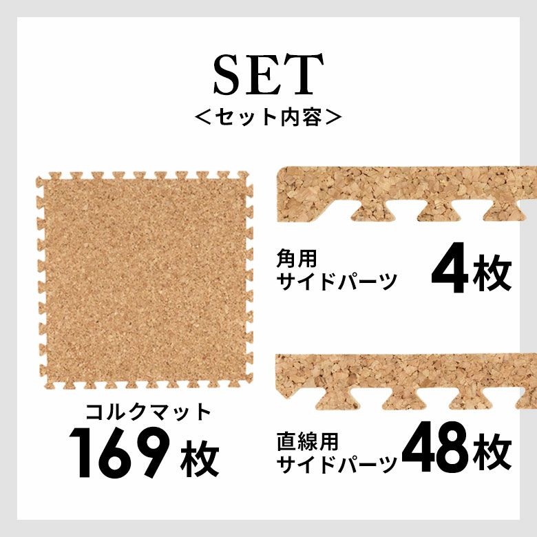 防音性・安全性・保温性に優れたジョイント式コルクマット 【国内検査済み】コルクマット[エコルク]大判45cmタイプ 48枚セット 団地間 江戸間6畳用 サイドパーツおまけつき【おしゃれ コルク カーペット コルクカーペット コルクタイル ジョイントマット プレイマット ジョイント マット 素材 赤ちゃんマット 防音 防音マット 床】